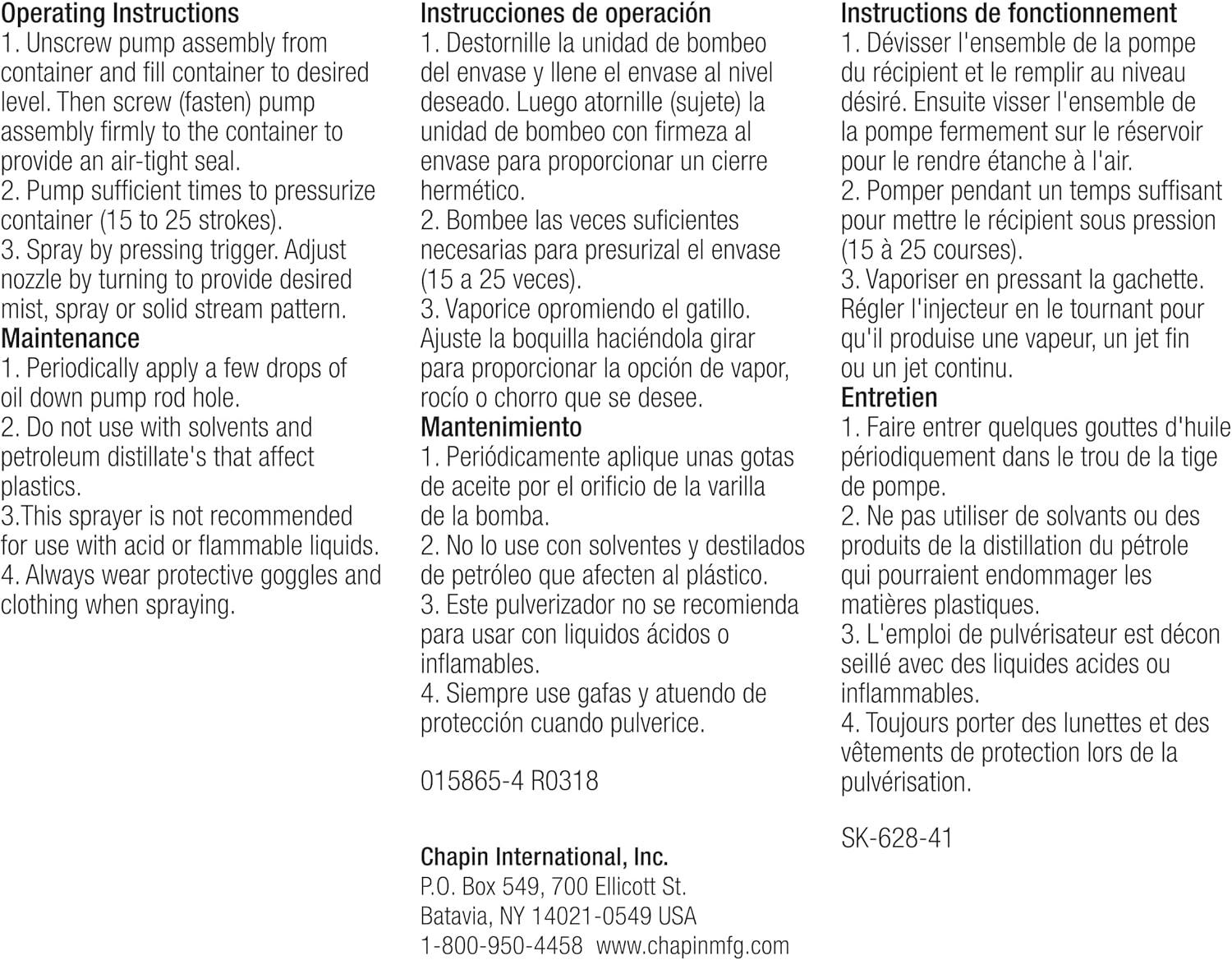 - MADE IN THE USA WITH GLOBAL MATERIALS: designed and produced in the USA, in Batavia, NY, with US-based customer service and technical support; backed by Chapin’s 1-year limited warranty