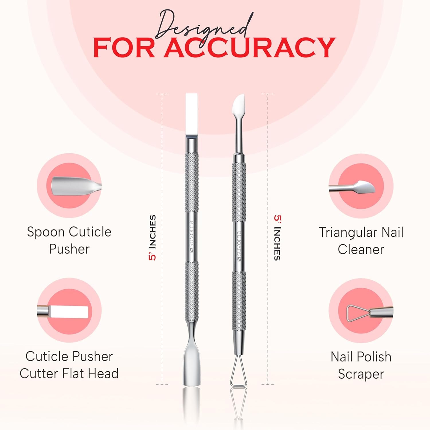 - ✅ Premium Stainless Steel Craftsmanship: Built with upgraded polished stainless steel, this professional 5-in-1 cuticle trimmer set includes a cuticle trimmer, cuticle pusher, cuticle cutters for nails, nail scraper and gel remover. Sharp, rust-resistant, and long-lasting—perfect manicure tools for fingernails, dead skin, and cuticle maintenance.