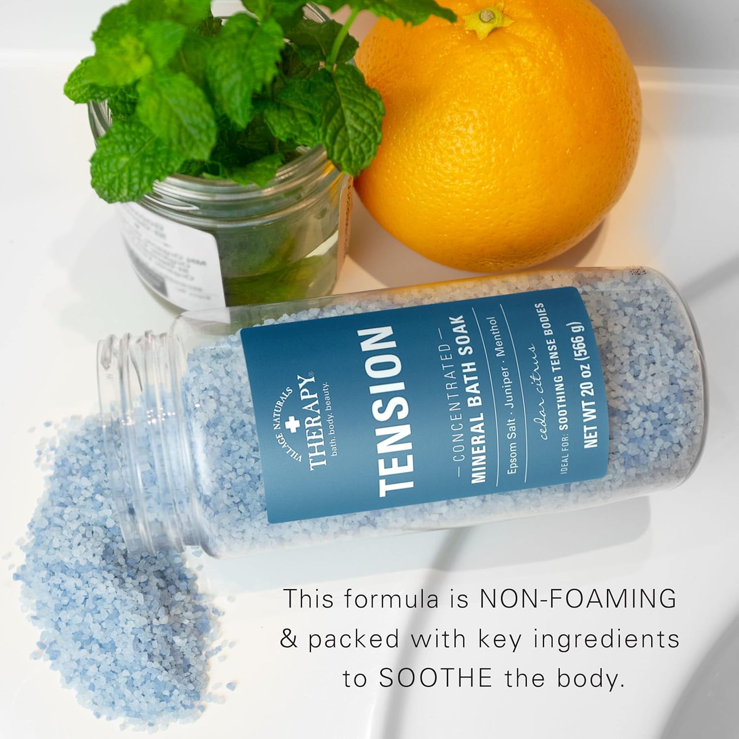 - THERAPEUTIC BATHING EXPERIENCE: Pain caused from stressed, overworked, or tense muscles can be relentless. Our Tension Relief Concentrated Bath Soak contains a powerful blend of Essential Oils and Extracts that will help relax your mind and soothe your strained muscles. Experience the joy of a relaxing bath with a refreshing Sweet Citrus fragrance.