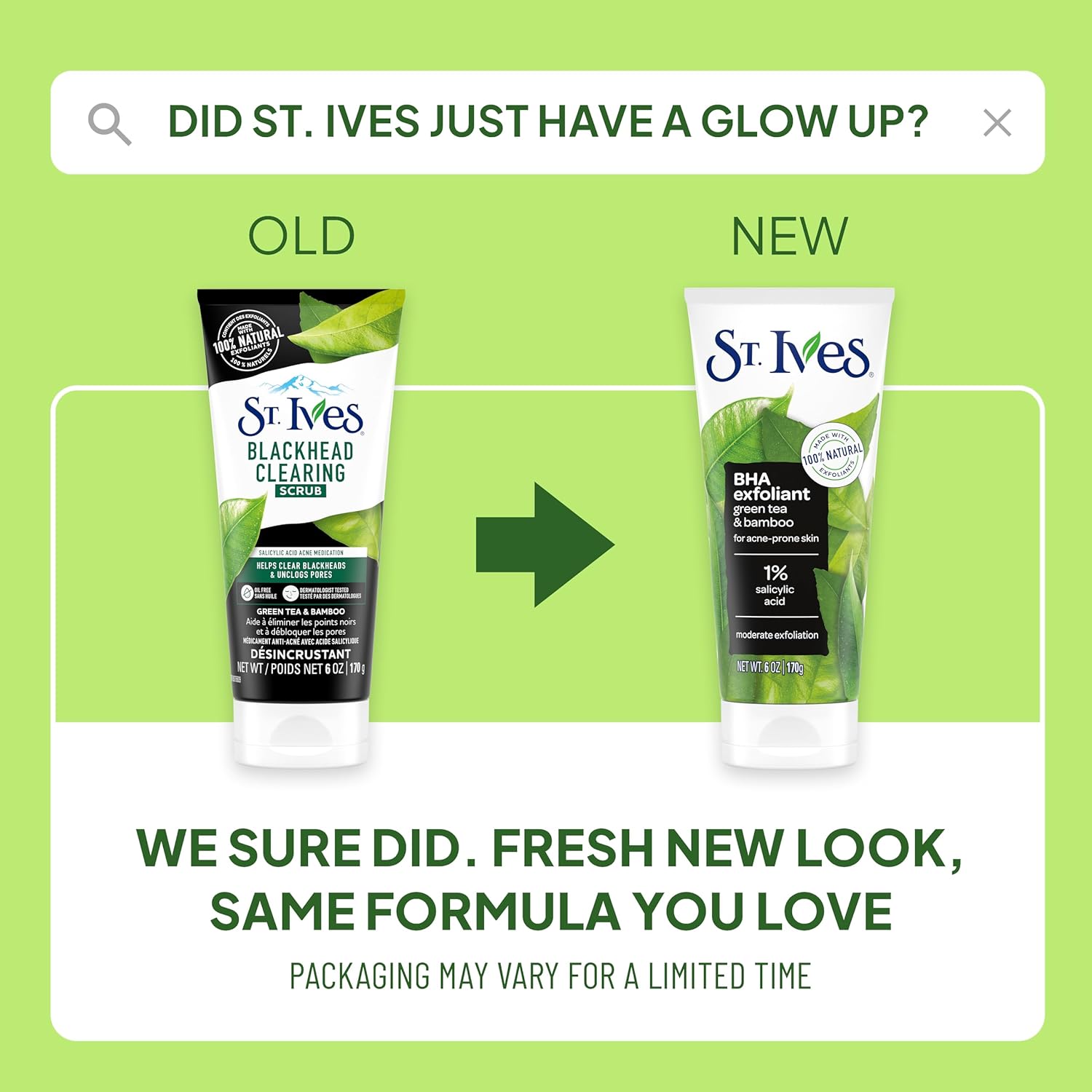 - BYE-BYE BREAKOUTS: St. Ives Blackhead Clearing Face Scrub contains 1% salicylic acid, which helps clear skin of blackheads and acne.
