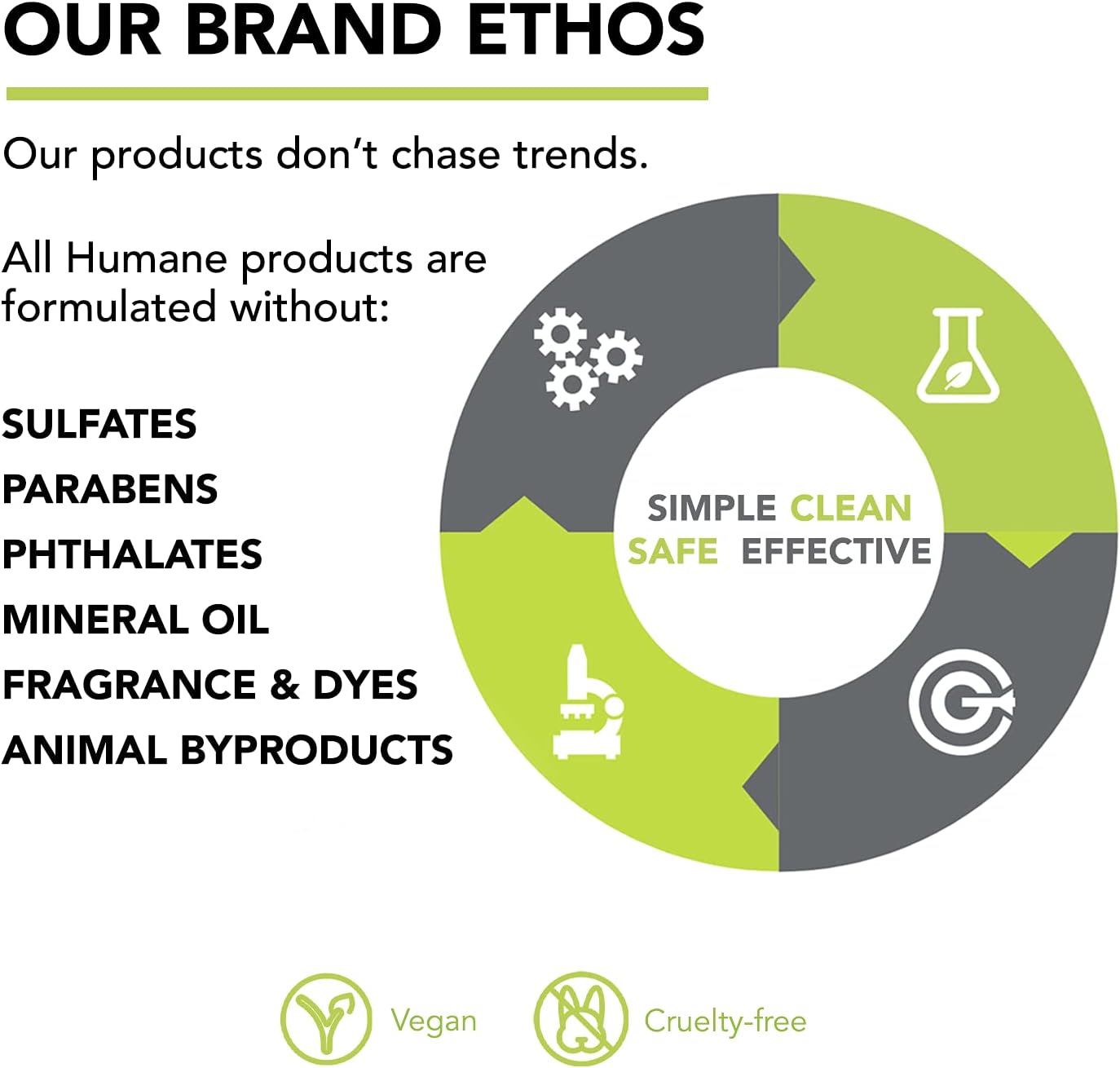 - Simple, Clean, Safe & Effective: Our products don’t chase trends. Instead, we harness the healing powers of potent ingredients to get you real results with clean, vegan and cruelty-free ingredients. You won't find parabens, phthalates, sulfates (SLS and SLES), alcohol, paraffin, formaldehyde, mineral oil, synthetic fragrance/color, petrolatum, DEA, triclosan, GMOs or animal byproducts in our formulations. A proud member of PETA’s Beauty Without Bunnies program. Made in the USA.