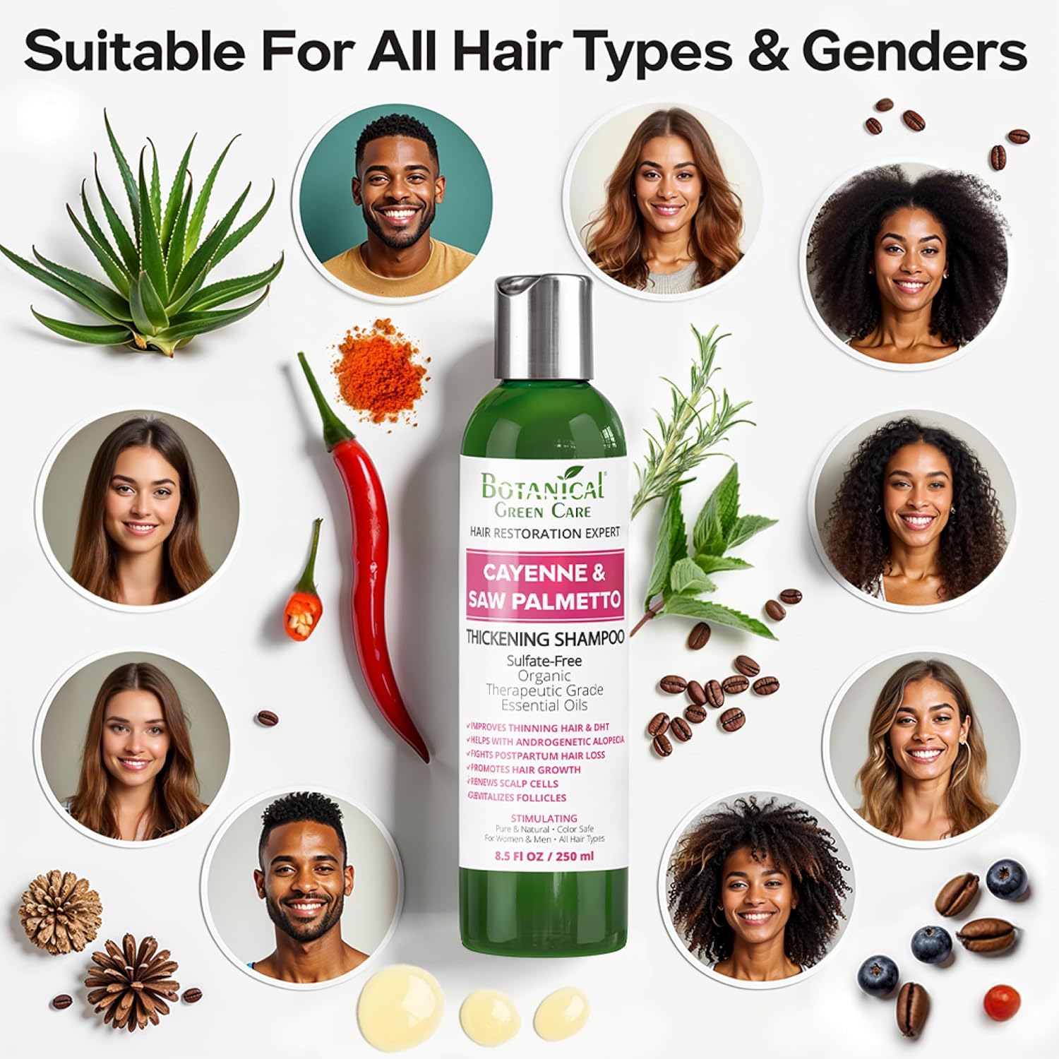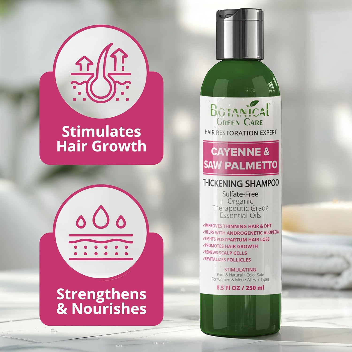 Cayenne & Saw Palmetto Biotin Shampoo for Thinning Hair – Vegan Volumizing Shampoo for Fine Hair with B Vitamins Argan Oil, Strengthening, Paraben, Silicone and Sulfate Free. Made in USA