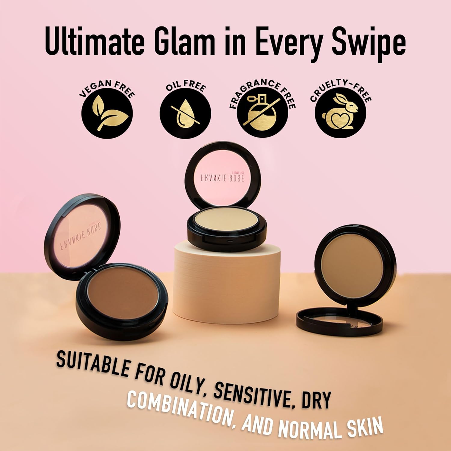 - PERFECT MATCH FOR EVERY SKIN TONE: Frankie Cosmetics Compact Powder is available in 12 drop-dead gorgeous shades so that you can find a perfect match for your skin tone: Cream Puff, Porcelain, Silk, Vintage, Buff, Spice, Honey, Olive, Tan, Bronze, Chestnut, and Espresso.