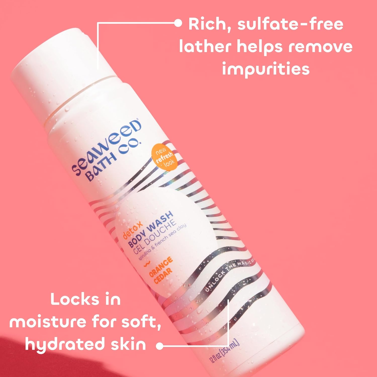 Seaweed Bath Co. Detox Body Wash - Rosemary Mint - Hydrating Foaming Cleanser with Refreshing Natural Ingredients - Vegan, Paraben and Sulfate Free Shower Gel for Women and Men - 12 oz