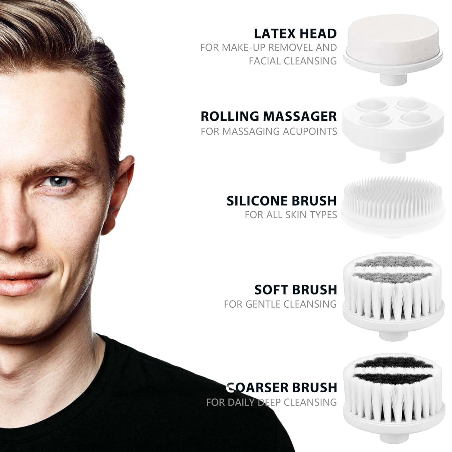 - FACIAL CLEANSING SYSTEM: The Cleansing system of our Latest spinning Technology are strictly tested and designed with most advanced for 5 Brush Heads: 2 bristle brush heads, 1 silicone brush head,1 makeup remover sponge, 1 rolling massage brush head. suitable for all skin types including sensitive skin, which can meet a variety of cleansing and skincare needs including comprehensive exfoliating, Remove dirt, oil, and sweat & makeup, fresh & renewed skin.