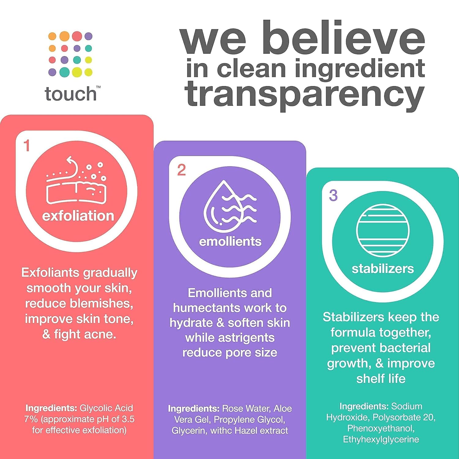 - Clears, Refines, & Preps Skin: Made with 7% glycolic acid, rose water, witch hazel, & aloe vera to refine pores and resurface your face for a more radiant and youthful complexion. This alcohol & oil free toner is safe for all skin types including oily, dry, & combination. Leaves your skin more absorbent and receptive to serums, creams, and moisturizers.