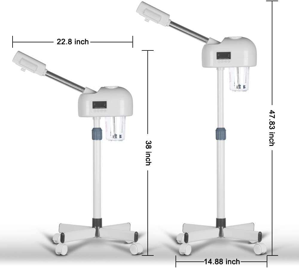 - Adjustable Height & 360° Rotatable Nozzle: The adjustable height(38"-47.83") and 360° rotating nozzle allows you to complete your facial spa at multiple angles and heights conveniently. Place the sponge in the aromatherapy cartridge at the nozzle, drop in the aromatherapy oil and enjoy your aromatherapy spa.