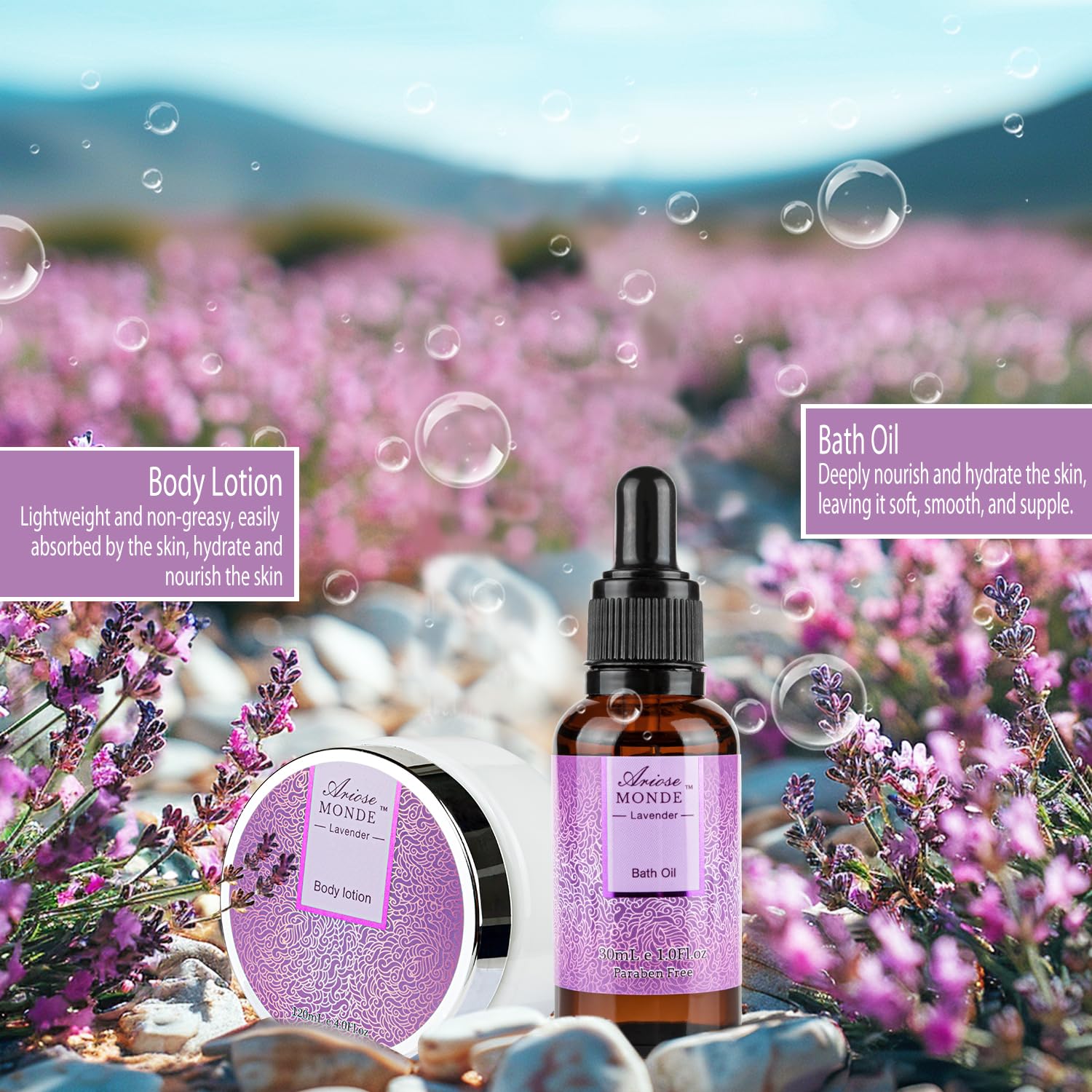 - LONG LASTING FRAGRANCE: Sweet and beloved lavender scent, using the principle of fragrance retention by essential oils, gently cleanses with a pampering lather to leave your skin moisturized long after the bath. Pamper yourself with this luxurious collection of spa products