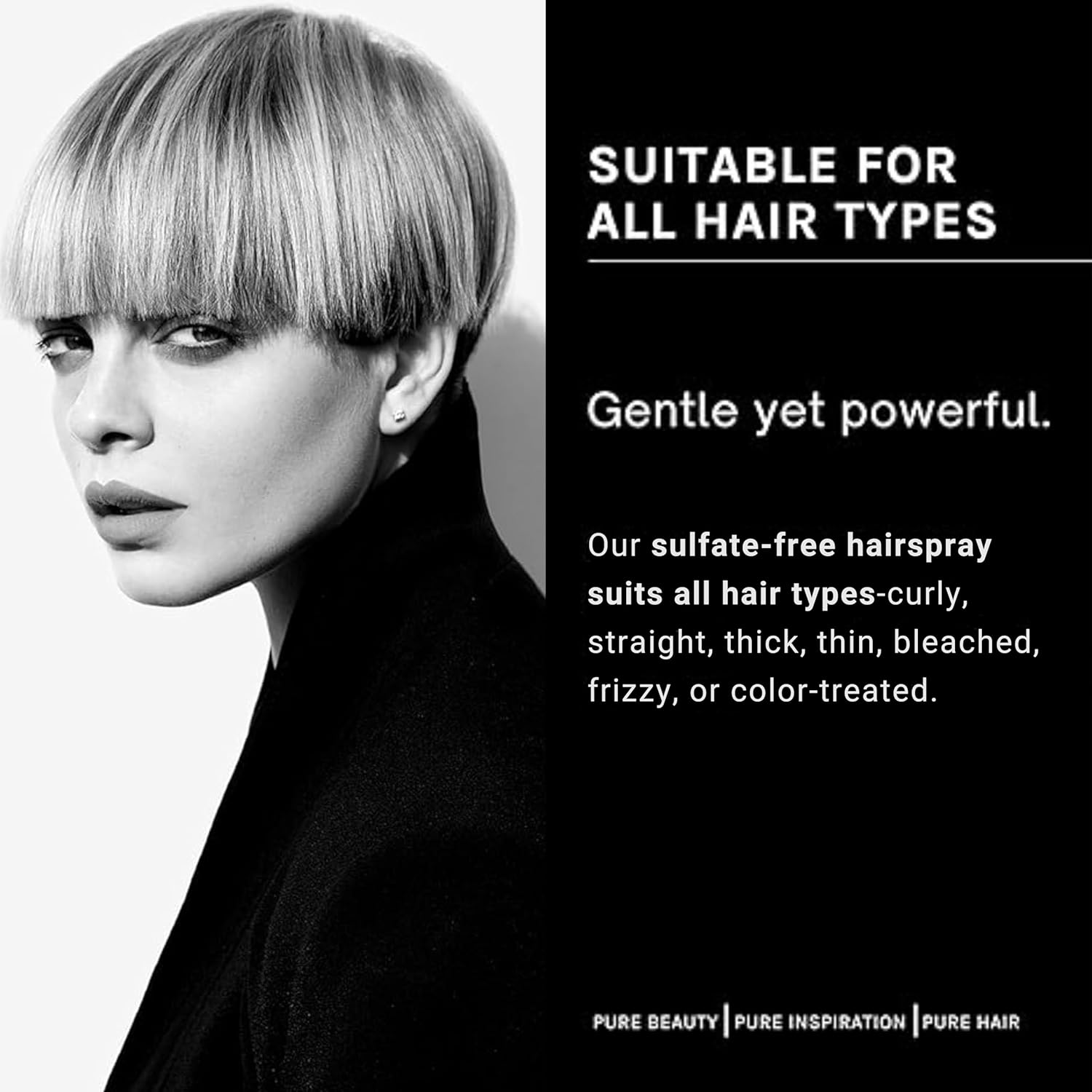 - Premium Ingredients For Luxurious Hair: Our strong hold hairspray is crafted with high-quality ingredients free from sulfates and parabens, this hairspray for women extra hold provides a clean, flexible hold. Designed for salon-quality results, it maintains your style with a soft, flexible finish