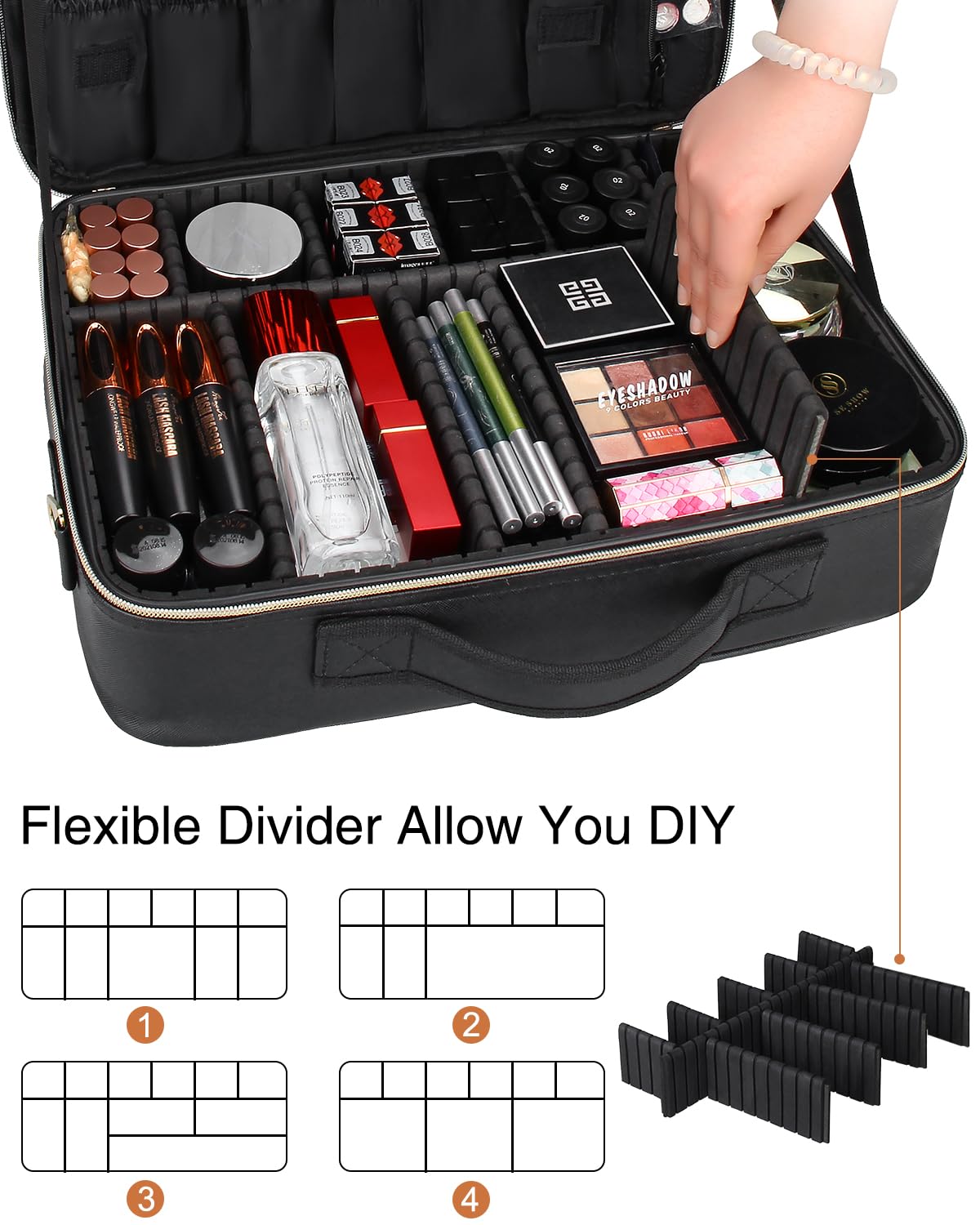 - DIY SPACE:The professional makeup bag has adjustable dividers, the bottom space is designed by you according to the shape of the item,it can keep all items neatly and sturdy.