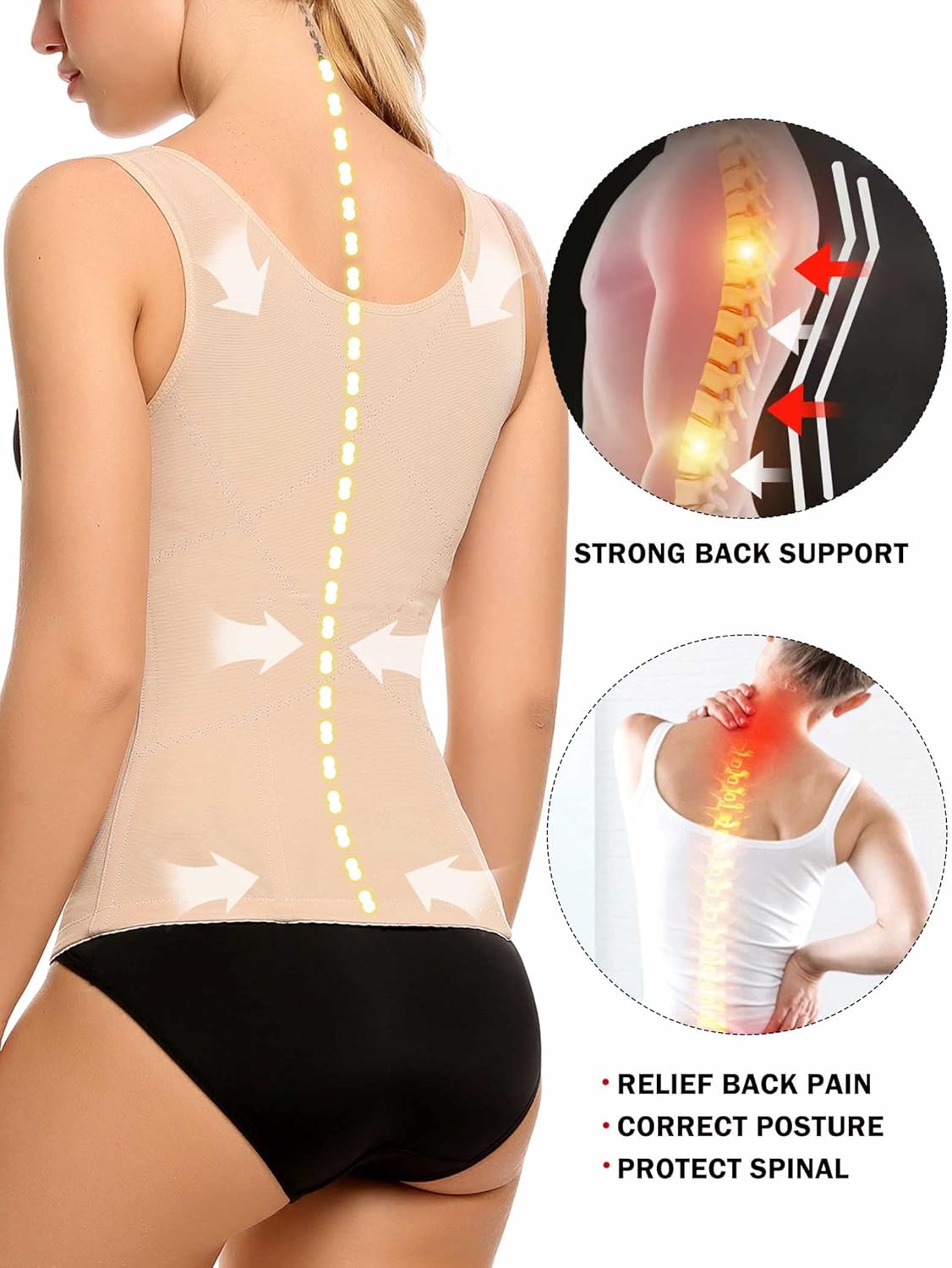 • 【SUITABLE FOR ANY WEIGHT LOSS PROGRAM】Our women shapewear vest can flatten abdomen,reduce waistline,support back,postpartum recovery,improve posture,relief waist pain,protect spine,expedite fat burn while exercise,combined with a healthy lean diet and drink plenty of water for weight loss.