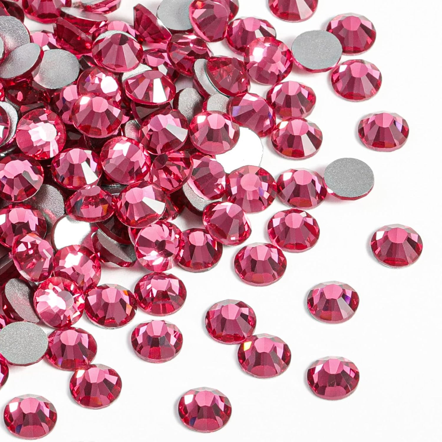 beadsland Flat Back Crystal Rhinestones Round Gems for Nail Art and Craft Glue Fix,Rose (1.3-1.4mm) SS3/1440pcs