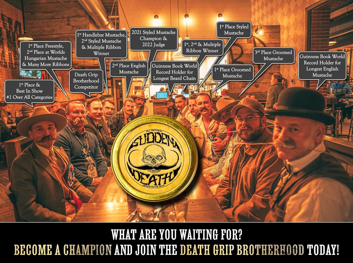 Mustache Wax Strong Hold Grooming For Men | Sudden Death Moustache & Beard Wax 1oz Tin | Perfect For Handlebar Mustaches By Death Grip | No Heat Source Required