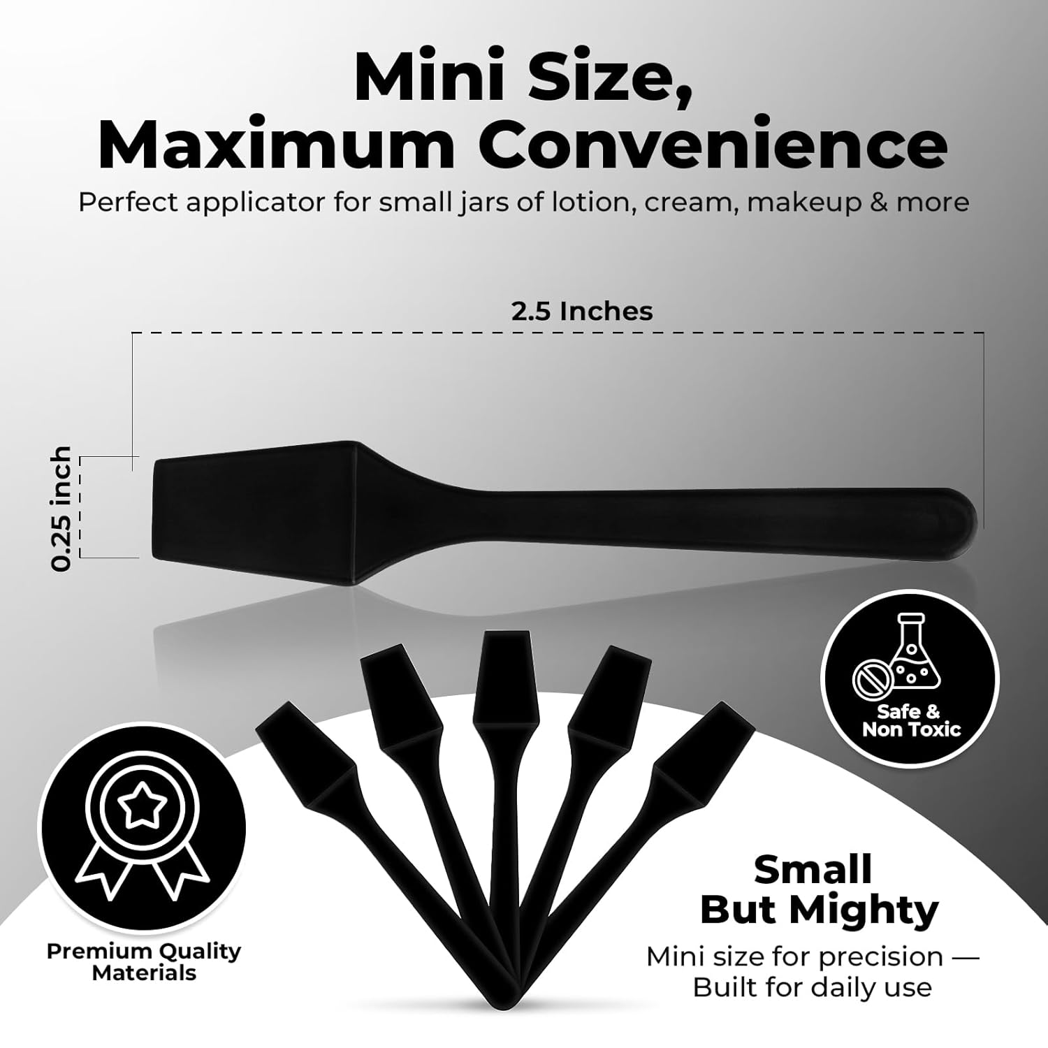Mini Lotion Spatula (2.5", 100 Pack) - Mini Spatula for Cosmetics, Creams & Crafts | Ointment Applicator for Mixing, Skincare, Face Mask | Disposable Lotion Applicator for Face | Black