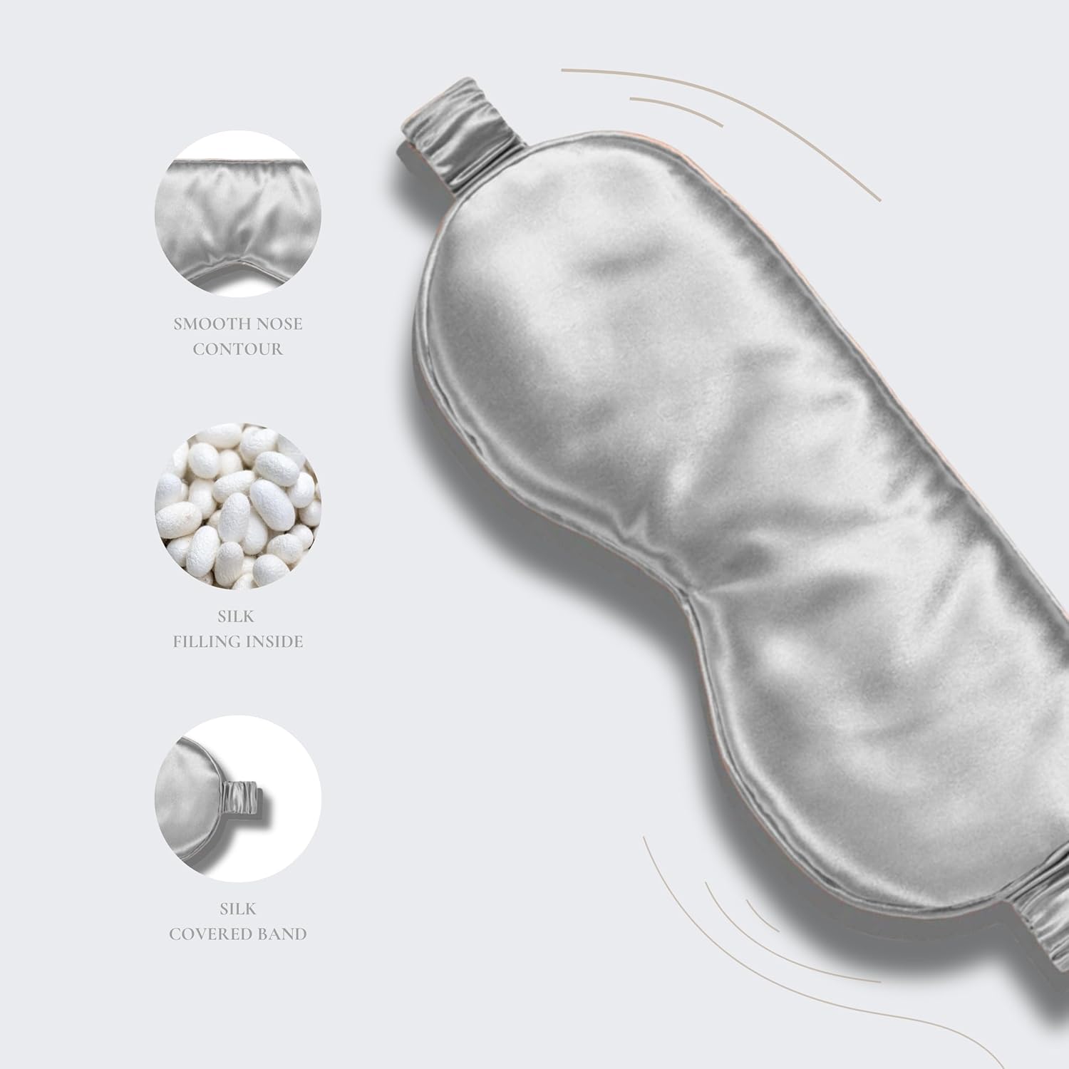 Silk Eye Mask - 100% Pure Mulberry 22 Momme Silk Sleep Mask (Silver Gray)