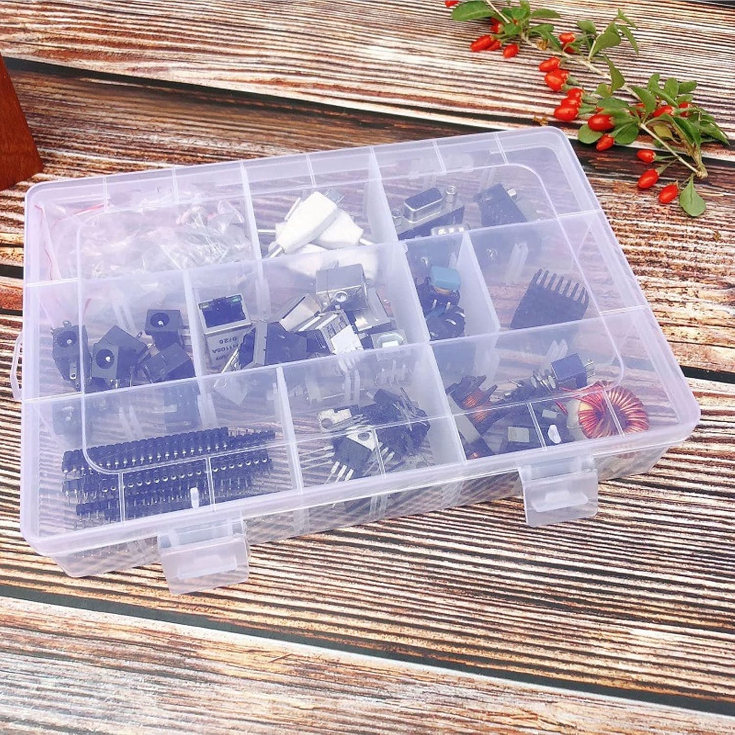- 36-Grids Removable Dividers:The horizontal grid dividers inside the clear plastic organizer are removable, so you can easily create box compartments to store items of different sizes.Versatile storage organizer box widely used for organizing small items, such as trinkets, earrings, rings, necklaces, beads; fish hooks, bait balls, electronic parts, crafts, nails, nuts and bolts, etc.