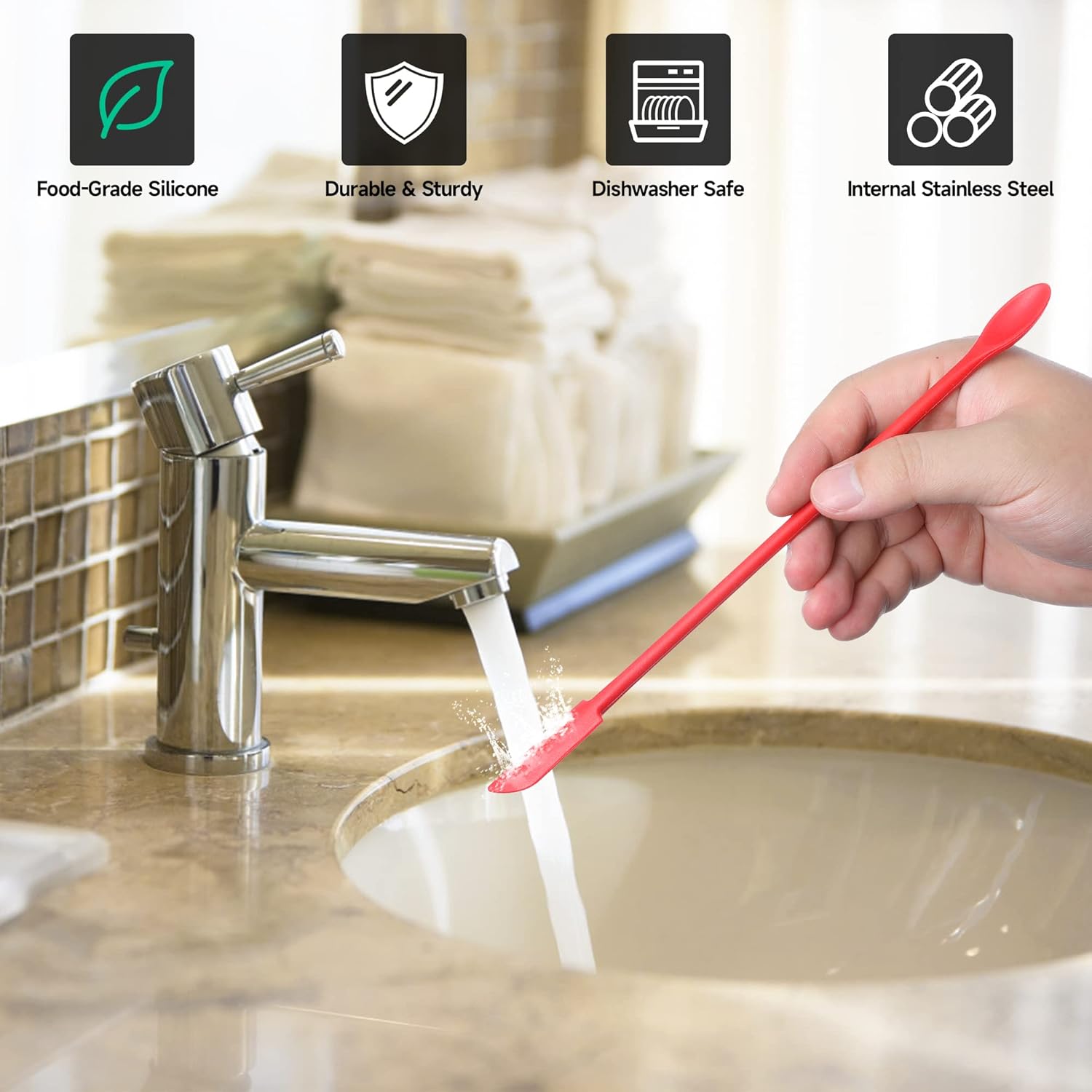 Mini Spatula Silicone Spatula Set - 4pcs Small Makeup Scrapers for Cosmetics, Reusable Beauty Tiny Tools, Thin Jar Scraper, Get the Last of the Makeup Out of the Bottle(Red)