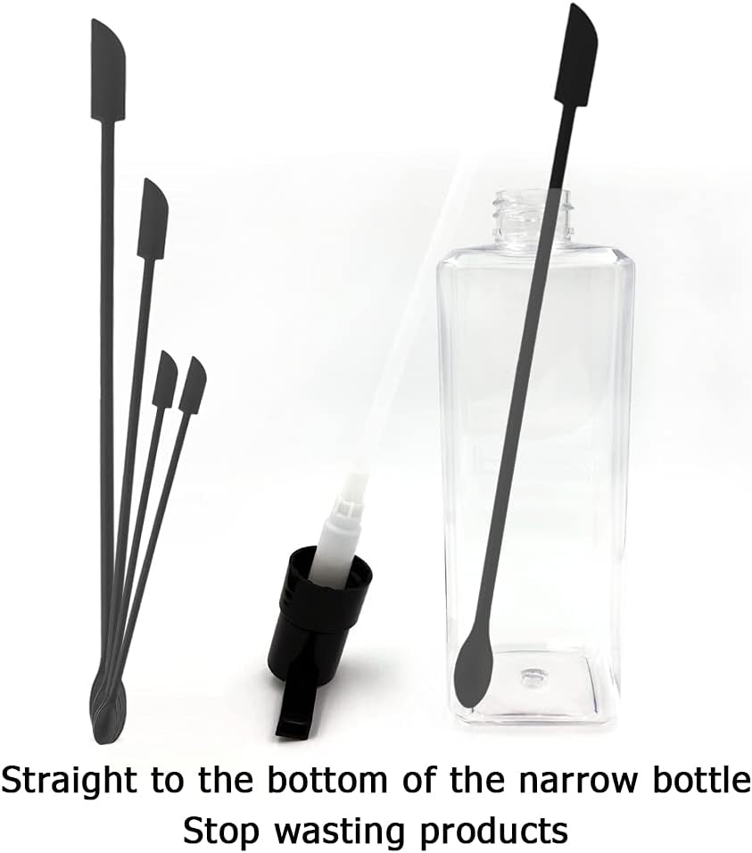 Set of 8 Mini Spatulas Makeup Scraper, MaehSab Silicone Reusable Tiny Thin Jar Scraper for Getting Last Lotion out, Rubber Makeup Long Spoon Bottle Scraper for Kitchen Food Beauty Make up, Black