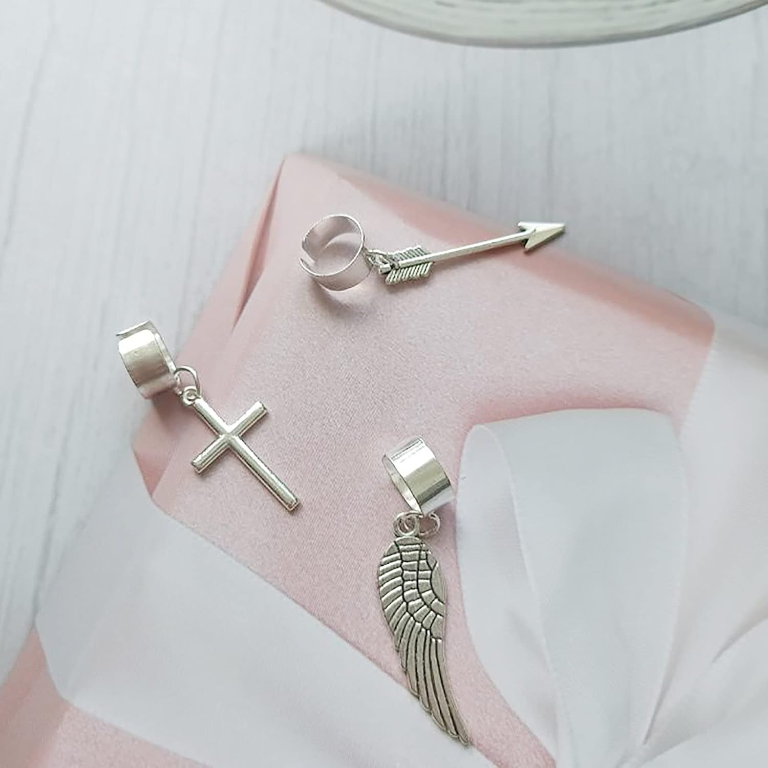 Angel Wings Ear Cuffs 3Pcs Arrow Cross Ear Chain Helix Cartilage Clip Dangle Jewelry for Women Men…