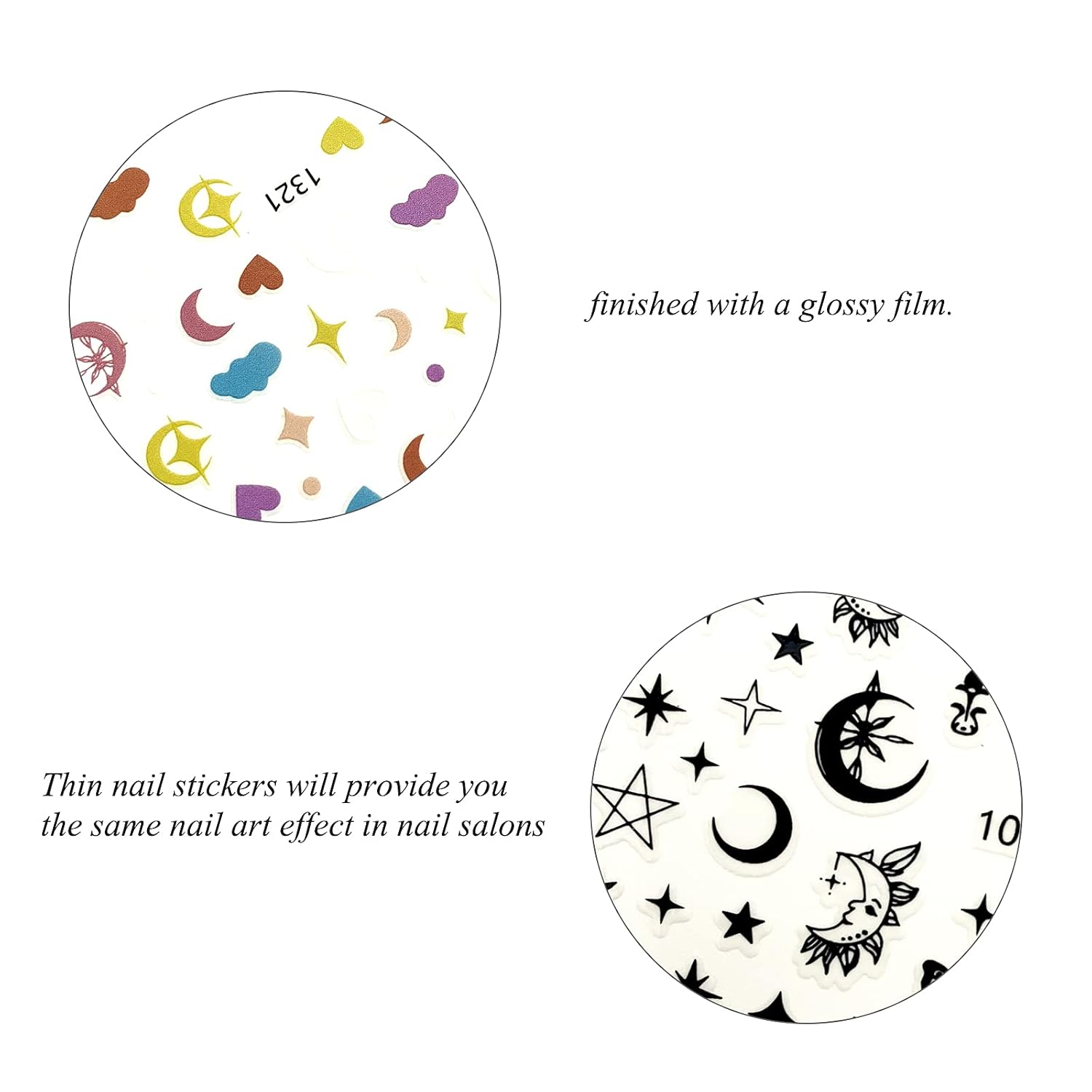 - This star nail sticker set includes patterns of stars, starry sky, star cloud, cloud, rainbow, heart and wrangler, various themes for multiple choices.