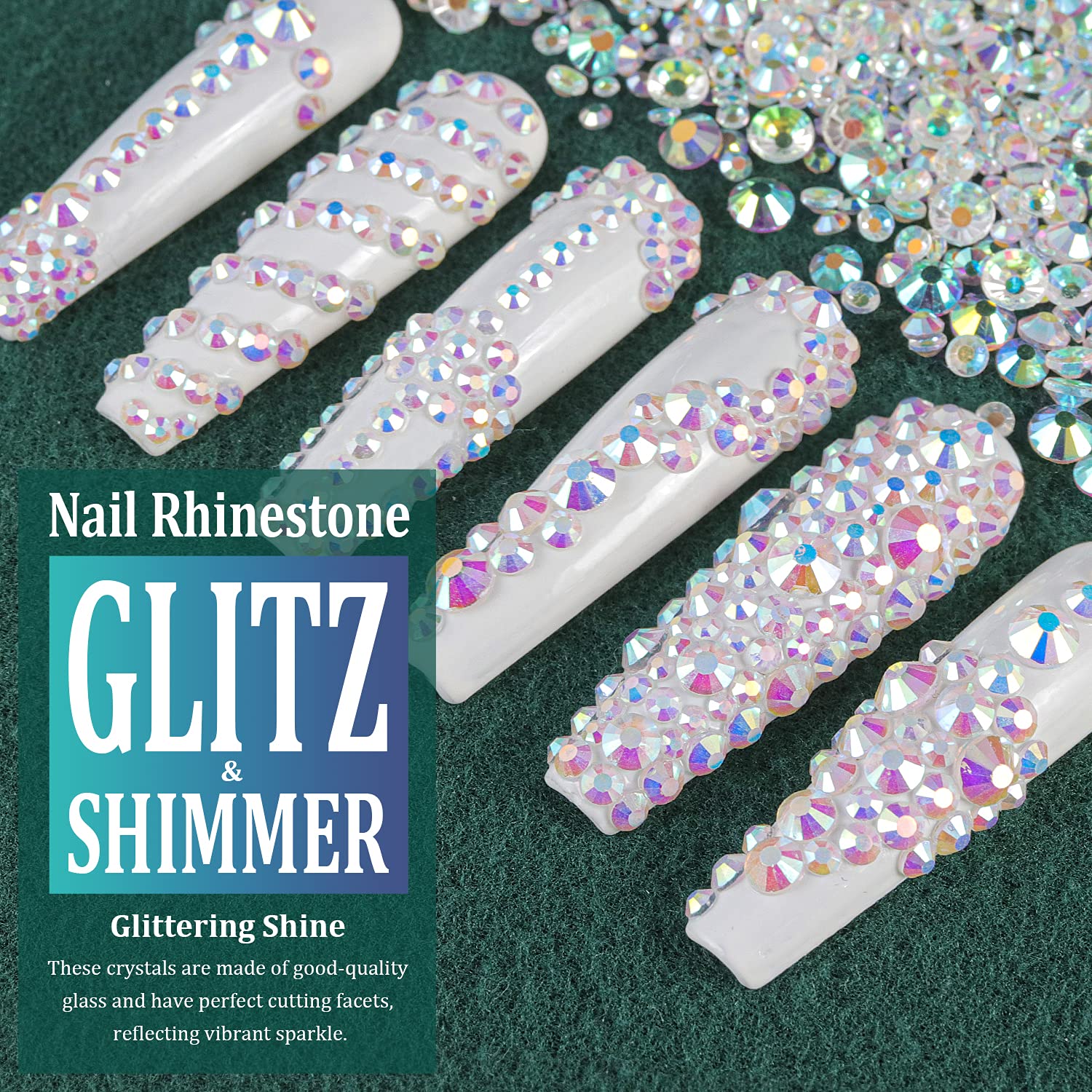 - ❤BRIGHT & VIBRANT SPARKLE -- The Nail Crystal Is Made of Glass And Has Delicate and Exquisite Shine. The AB Coating Is Bonded Firmly to the Outer Surface of Each Crystal Bead with Durable Sparkling and Brightness.