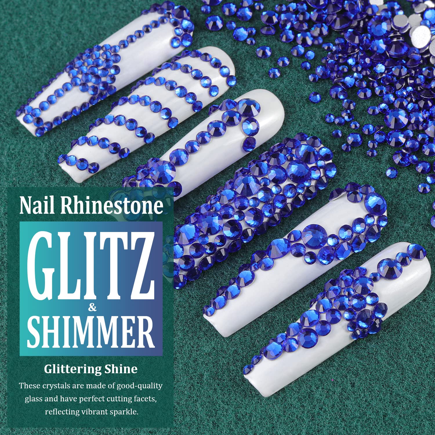 - ❤WHAT YOU WILL RECEIVE -- 1 Box of 6 Sizes Royal Blue Round Glass Nail Crystal Rhinestones Beads (Totally About 1720 PCS); 1 PCS Rhinestone Picker Pencil; 1 PCS Tweezer. The Well Equipped Rhinestone Set Is Suitable for Both Professional Nail Technician and Inexperienced Starter for Nail Art.