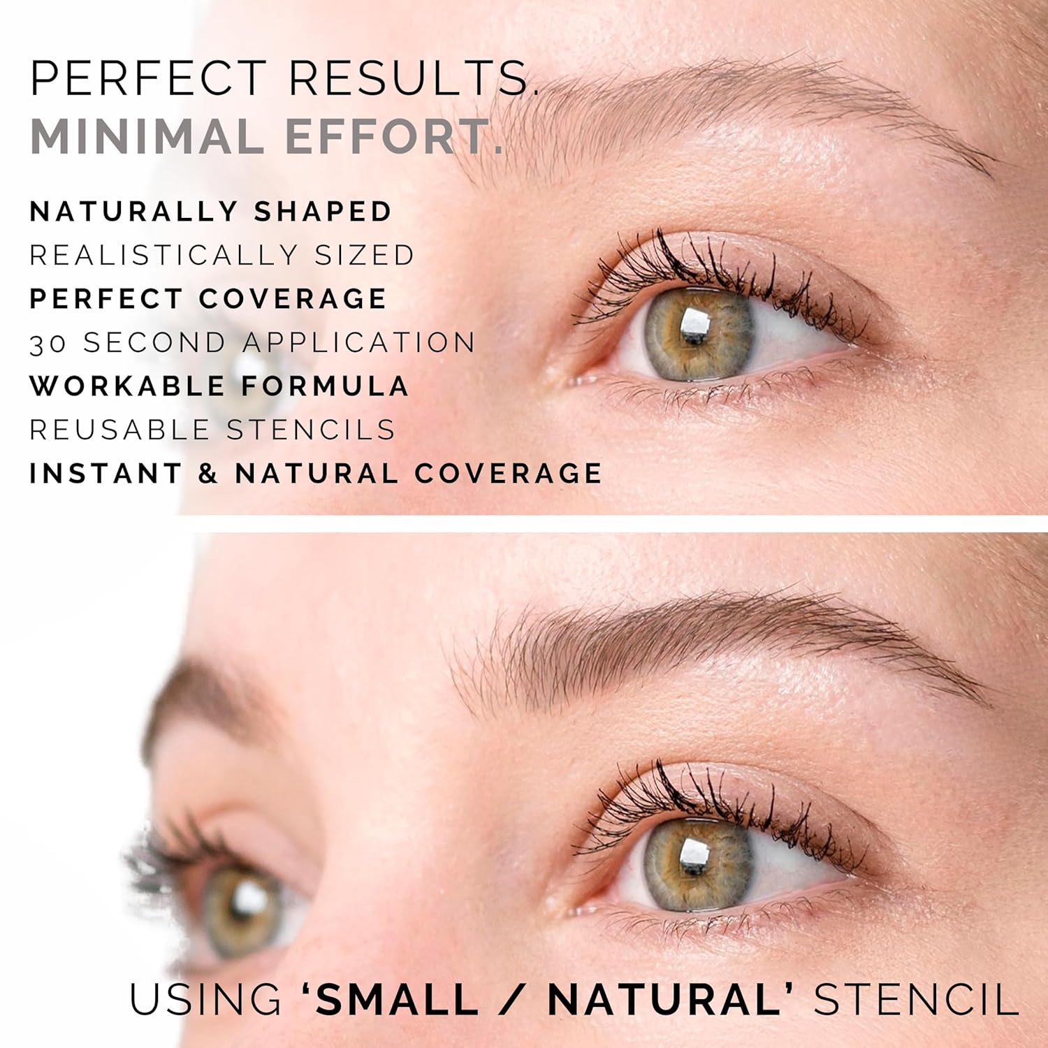 - ADJUSTABLE COLOR & EASY APPLICATION - Beautiful brows, incredibly simple! Apply the chosen stencil, pat the double-sided, duo-colored applicator on over the stencil, enjoy your new brows. If you need the color lighter or darker, you can easily adjust the pigment's intensity by dabbing the applicator onto a dry, disposable paper option. With two colors on each applicator, updating your look has never been easier. Plus, with 5 naturally sized stencil shapes, you’re sure to find your perfect match!