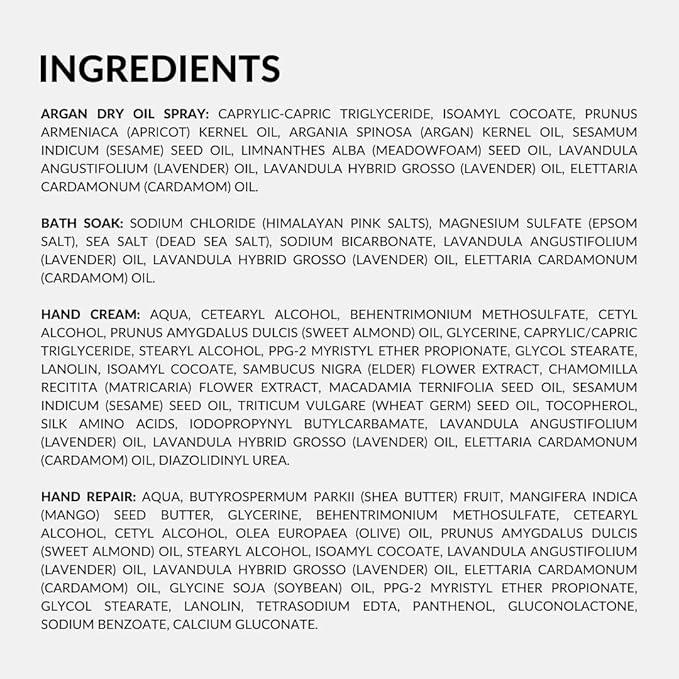 Discovery Kit - Argan Oil, Bath Soak, Hand Cream & Hand Repair (Lavender Smoke)