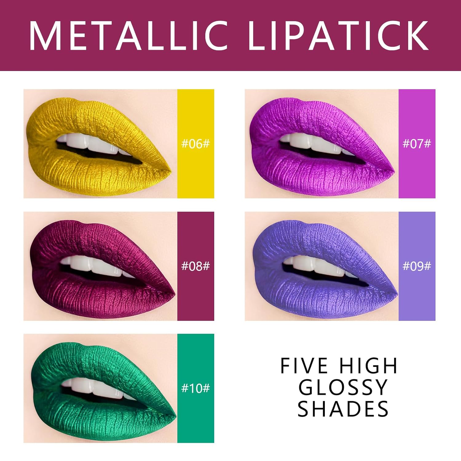 KYDA 10 Colors Lipstick Set, 5 Matte Velvet & 5 Shimmer Metallic Lips Color, Non-Stick Cup Long Wear Lip Glaze, High Pigmented Lipstick Cosmetic Gift Kit for Glossy and Full Matte Lip Gloss