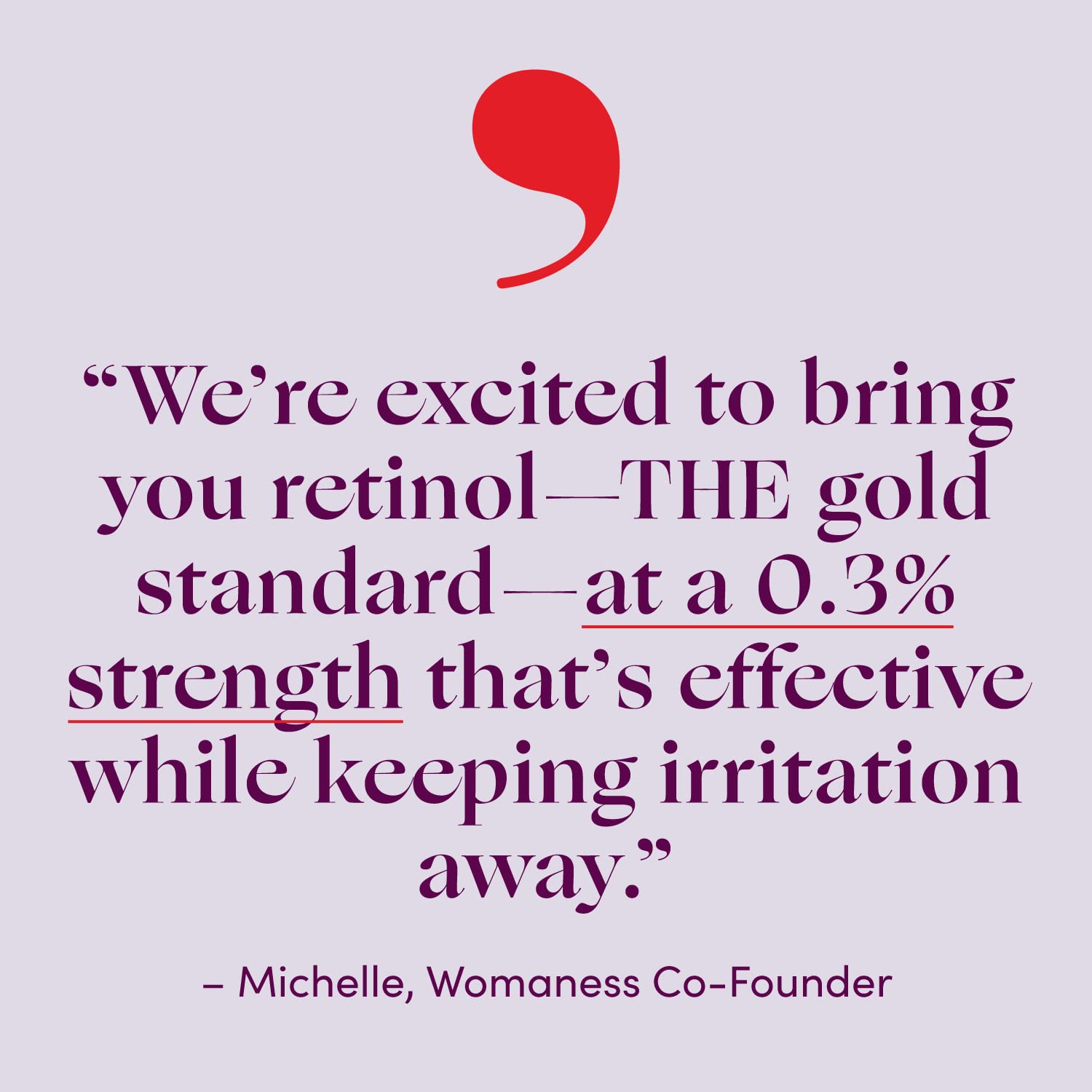 - CLEAN, EFFECTIVE SKINCARE FOR WOMEN : Womaness creates high-performance facial serums without compromise. This retinol anti aging serum is free from estrogen, phytoestrogens, added hormones, parabens, phthalates, sulfates, artificial colors, formaldehyde, and mineral oils. Thoughtfully formulated to hydrate, nourish, and celebrate skin at every stage of life.