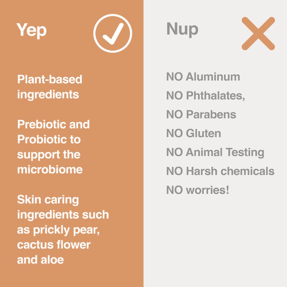 - ✔️ DERMATOLOGIST TESTED: Our probiotic rich formula is proven to be allergen free and non-irritating for all skin types. Each deodorant is microbiome approved, and filled with botanicals known to prosper in the harshest environments including coconut, prickly pear, cactus flower, and aloe. Together, these plants with modern science are the best pit crew around!