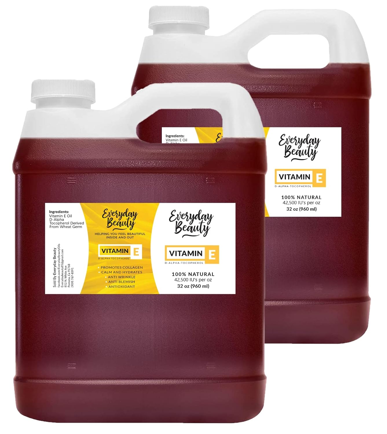 Pure Vitamin E Oil Bulk - 64 oz D-Alpha Tocopherol 100% Pure & All Natural 42,500 IU per oz - Not a Blend, Thick, Amber Color - From Wheat Germ - Face Body Hair - DIY Cosmetics & After Surgery Scars…