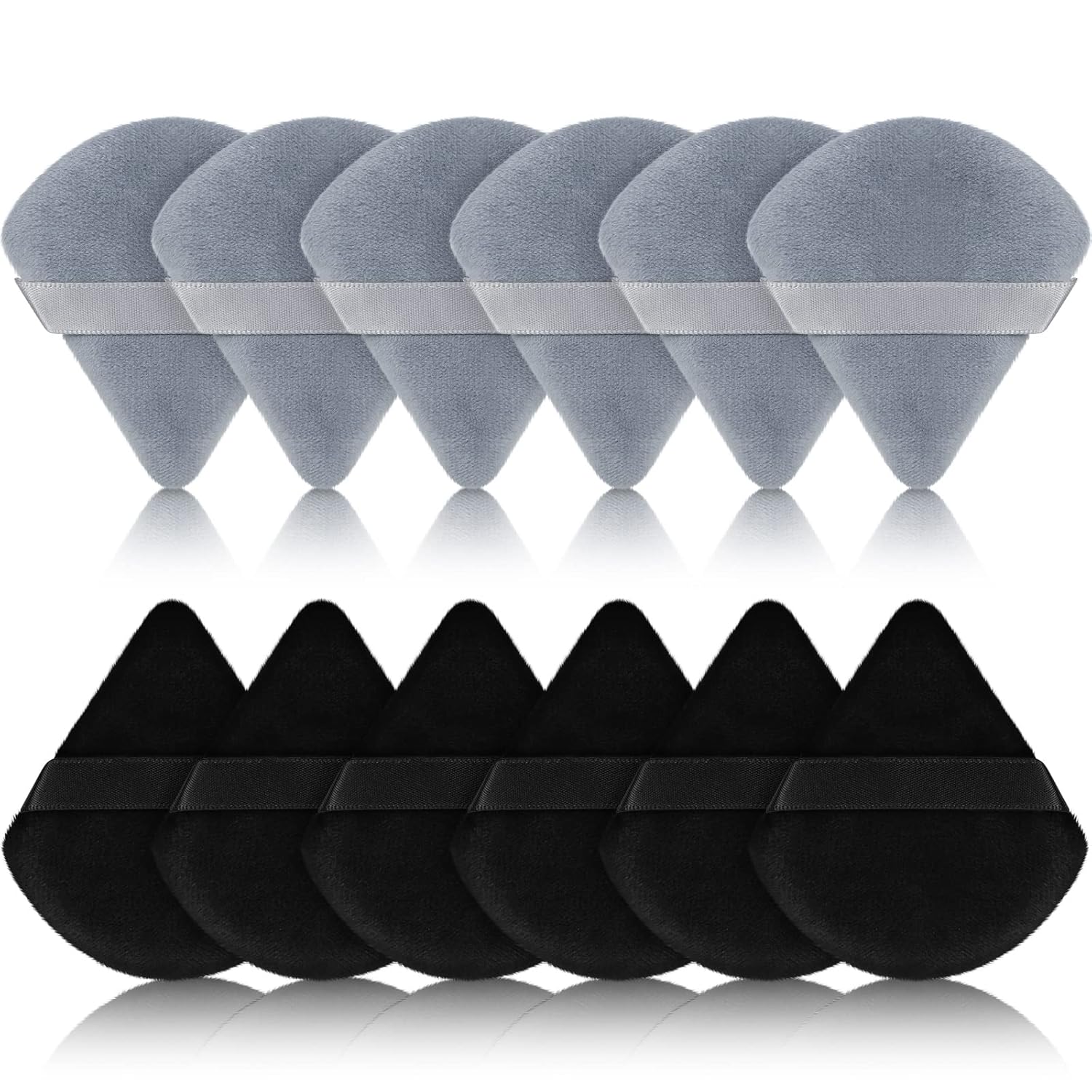 Maitys 12 Pieces Powder Puff Triangle Face Makeup Cosmetic for Loose Powder Soft Body Washable Reusable Foundation Sponge Mineral Wet Dry Makeup Tool for Women(Small,Black, Gray)