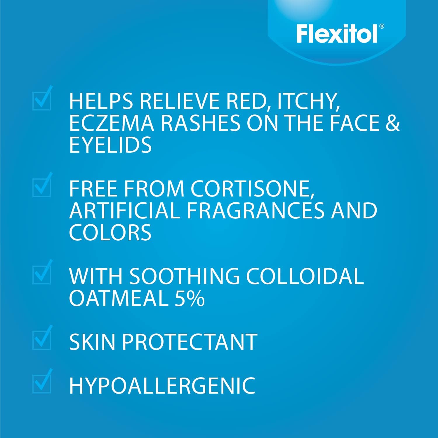 - Flexitol’s Face & Eyelid Eczema Cream is a non-steroidal cream for the treatment of facial and eyelid eczema. It provides soothing relief for delicate areas.