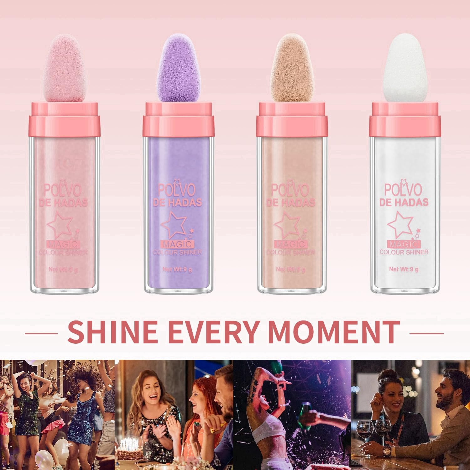 - 【Polvo De Hadas Powder】Polvo De Hadas a Tiktok latest trend shimming cosmetics. Contains pearlescent particles that reflect light for a radiant finish,Can be used on face, eyes, clavicle, and full body for a three-dimensional contouring effect.