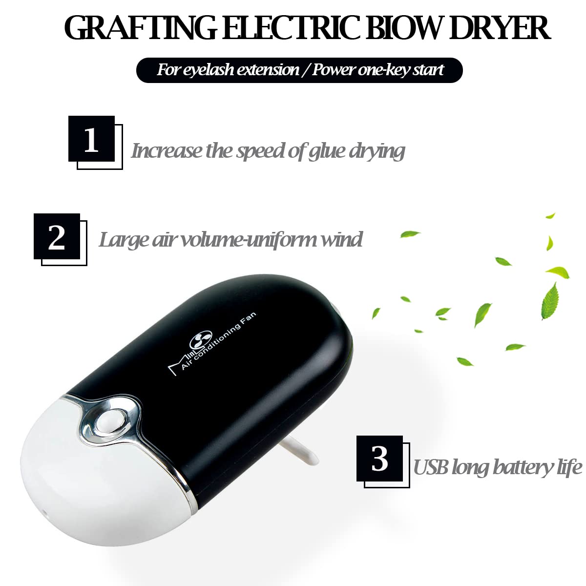 - 【Rechargeable Eyelash Fan Dryer】This USB rechargeable eyelash fan is designed without blades, safe and convenient,the built-in cooling system can blow out cold air to help the glue grafted eyelashes dry quickly.There is a T-shaped bracket on the back,which can stand on the table.Compact in size and light in weight,easy to carry and store,won't take up much space,you can carry it around you for travelling or business trips in your pocket or bag,and apply it anytime and anywhere.