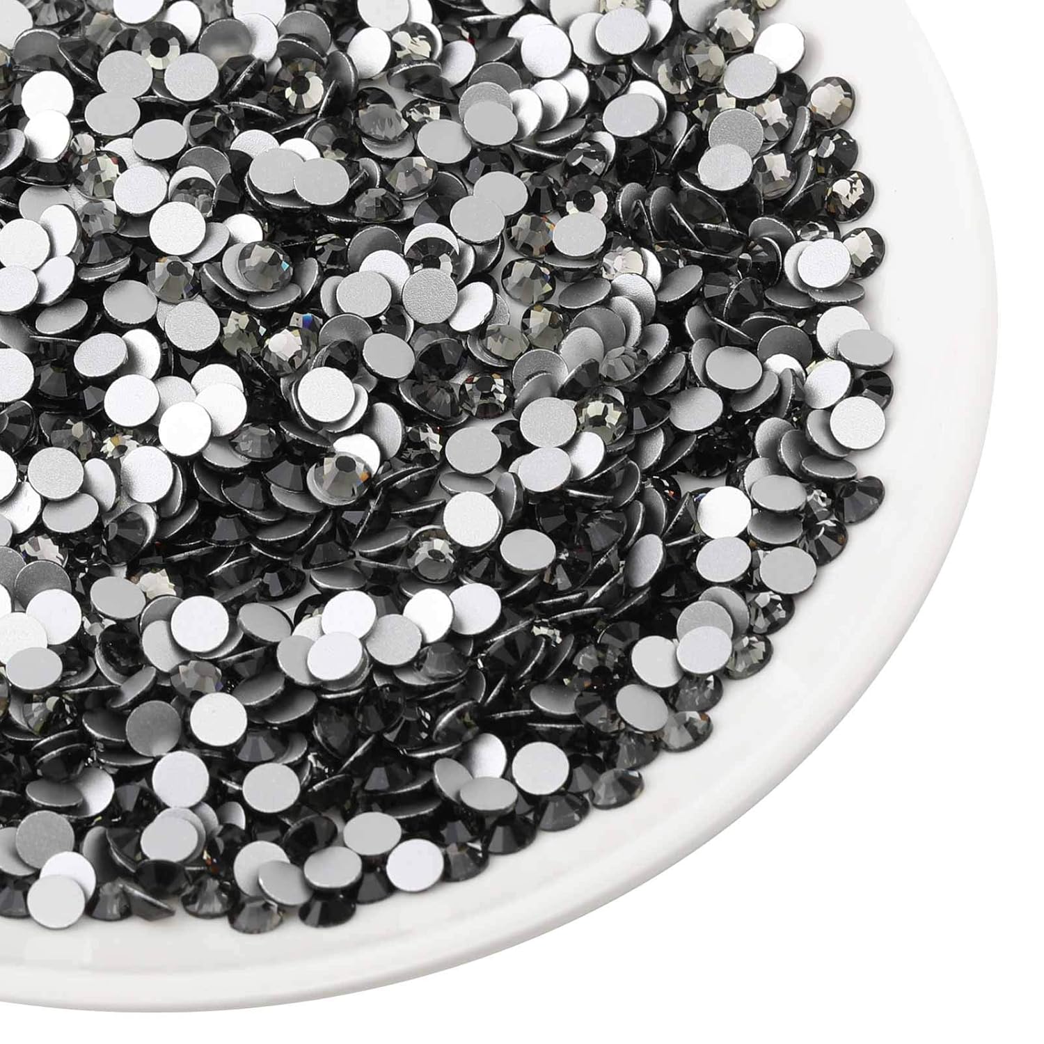 Beadsland 2880pcs Flat Back Crystal Rhinestones Round Gems for Nail Art and Craft Glue Fix,Black Diamond,SS4,1.5-1.7mm