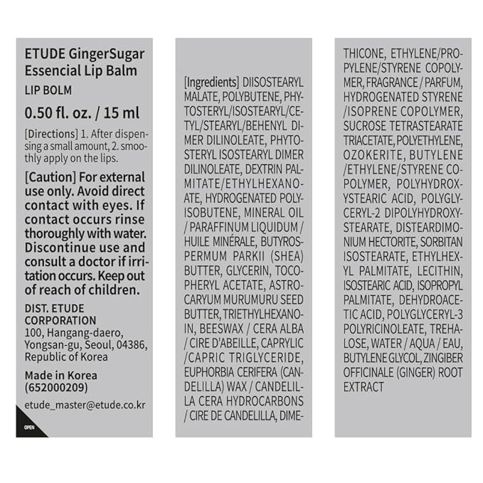 ETUDE Ginger Sugar Essential Lip Treatment 15ml | Gentle Korean Lip Skin Care| Smooth and Moist Lips| Natural Ingredients Nourish & Hydrate Ginger, Sugar, Shea Butter Give Moisturizing Relaxing Effect