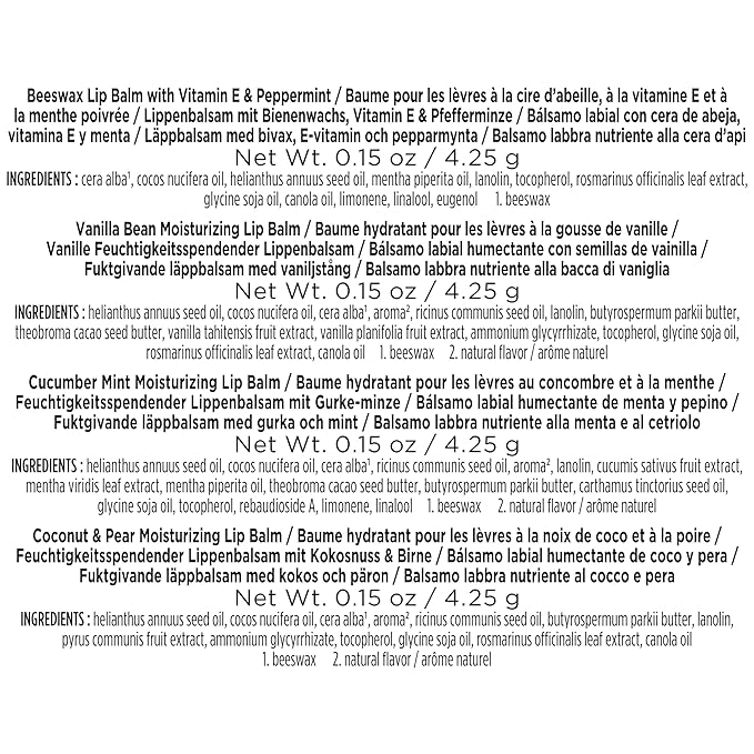 - 100% NATURAL ORIGIN FORMULA: Enriched with 100% natural origin formulas, these lip balms are formulated without parabens, phthalates, petrolatum or SLS