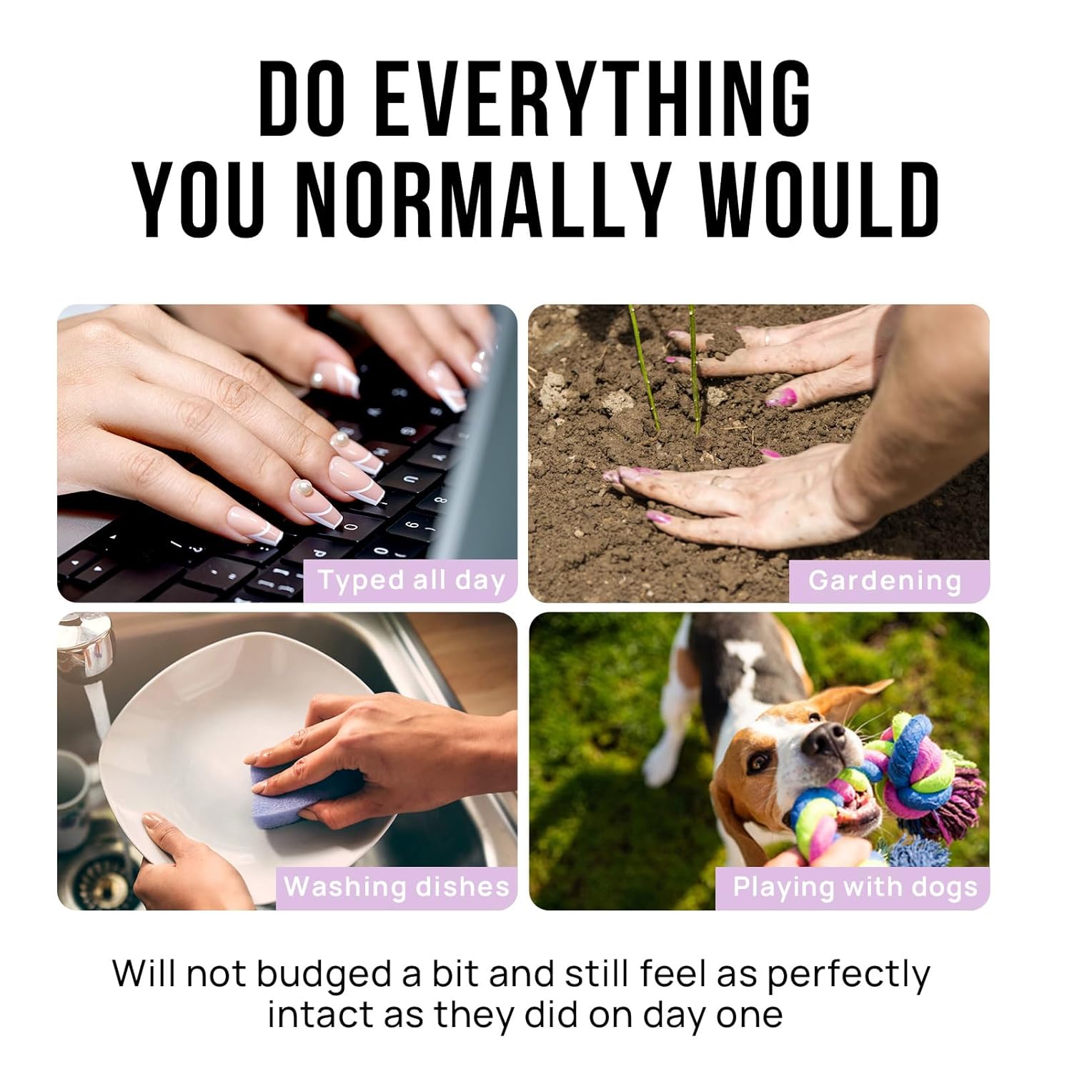 - Wear Them Weeks Straight or A Few Days - You Decide!If you want to get more than 14 days long lasting, we recommend using nail glue and adhesive tabs together. If you want to change the design weekly, only using glue is best choice. Adhesive tab is best for a date night or a little event