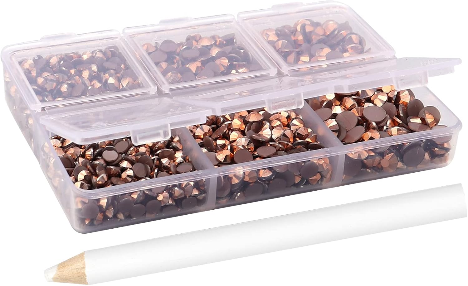 Multi Size 3mm 4mm 5mm Rhinestones Set for Nails Crafts Dark Peach Non Hotfix Rhinestones Nail Gems Rhinestone Jelly AB&Round Flat Back Resin Rhinestone for Makeup Clothes Shoes Eyes Bottles Crafts