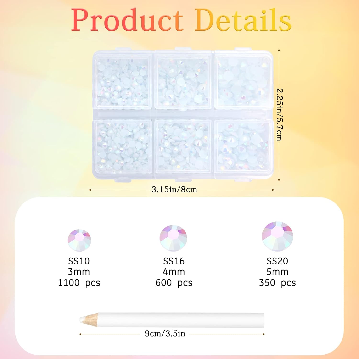 Multi Size 3mm 4mm 5mm Rhinestones Set for Nails Crafts White Non Hotfix Rhinestones Nail Gems Rhinestone Jelly AB&Round Flat Back Resin Rhinestone for Makeup Clothes Shoes Eyes Bottles Crafts