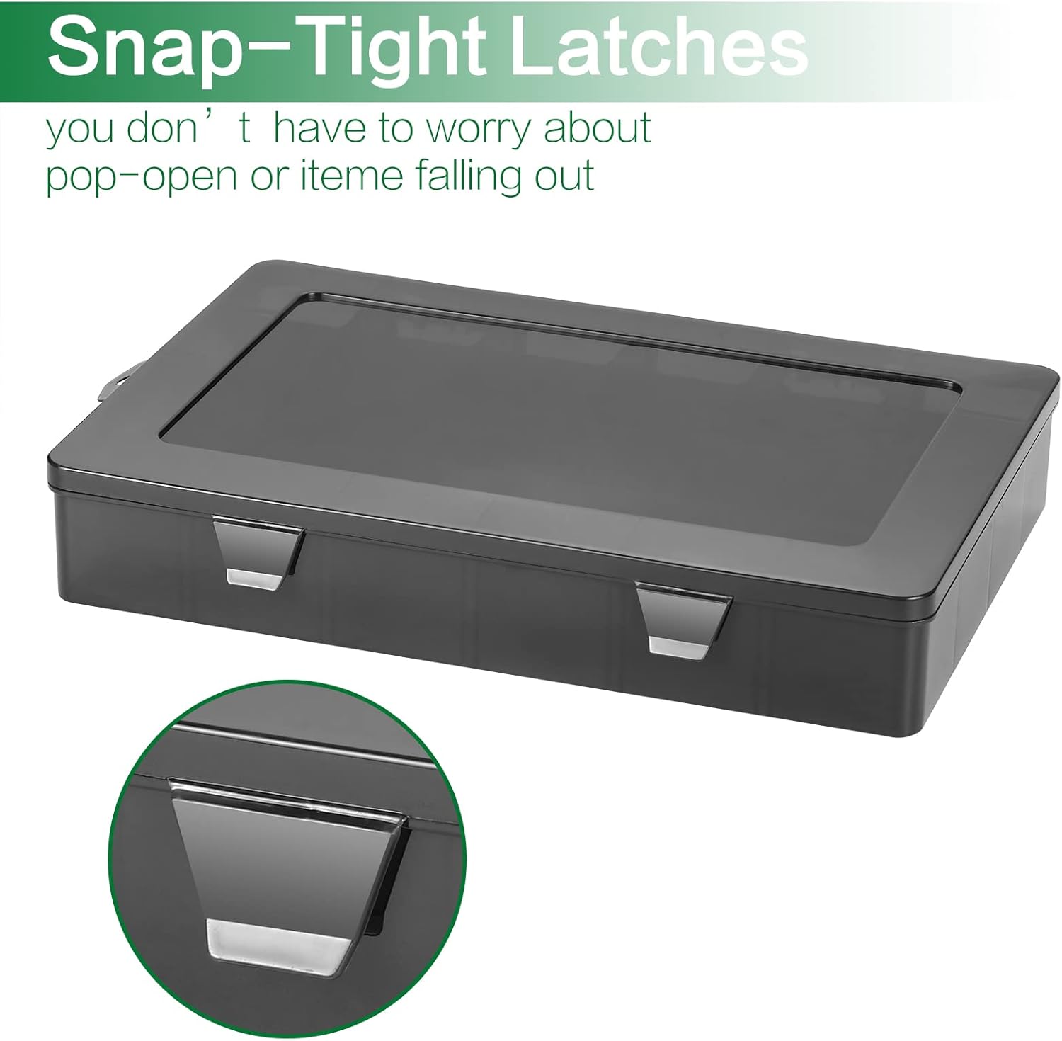 Large 24 Grids Plastic Organizer Box Adjustable Dividers,Clear Storage Box for Jewelry, Art DIY Crafts, Washi Tapes, Beads and Small Parts(Black, 1Pack)
