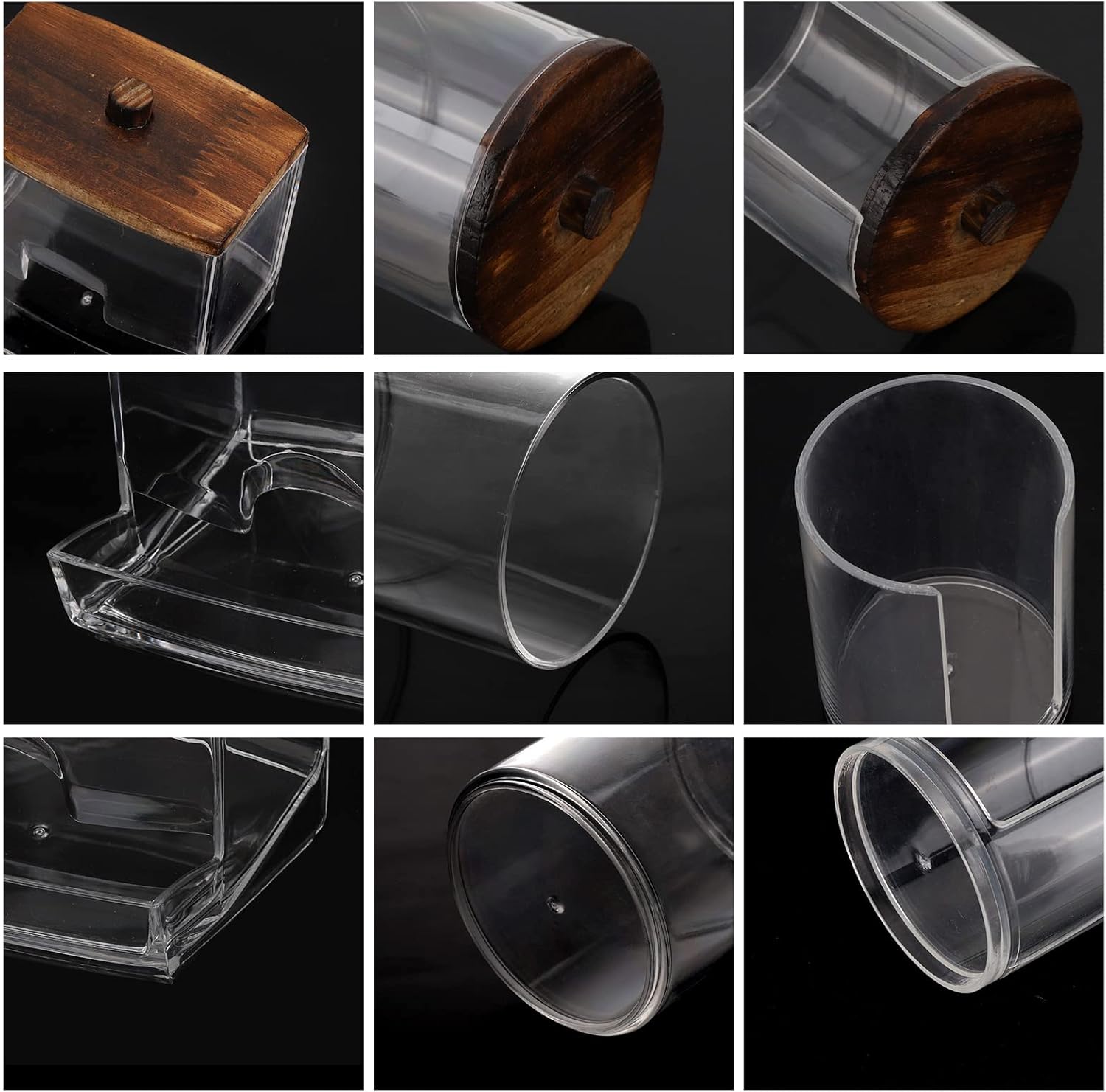 Tbestmax Bathroom Organizer Accessories Set-10 OZ,7 OZ Qtips Holder Storage with Wood Lids, Cotton Ball/Swabs Dispenser, Apothecary Container Jar 3 Pcs