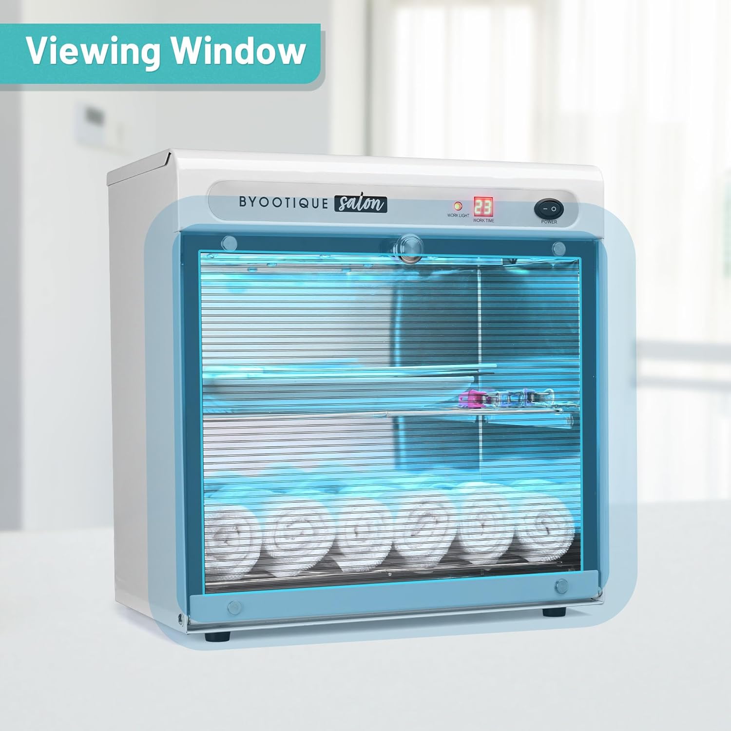 BYOOTIQUE 16L Nail Tool Cleaning Machine Electric Towel Cabinet Blue Light with Timer for Manicure Clippers Facial Skin Beauty Hair Salon Barbershop Spa Equipment Home Metal Tools