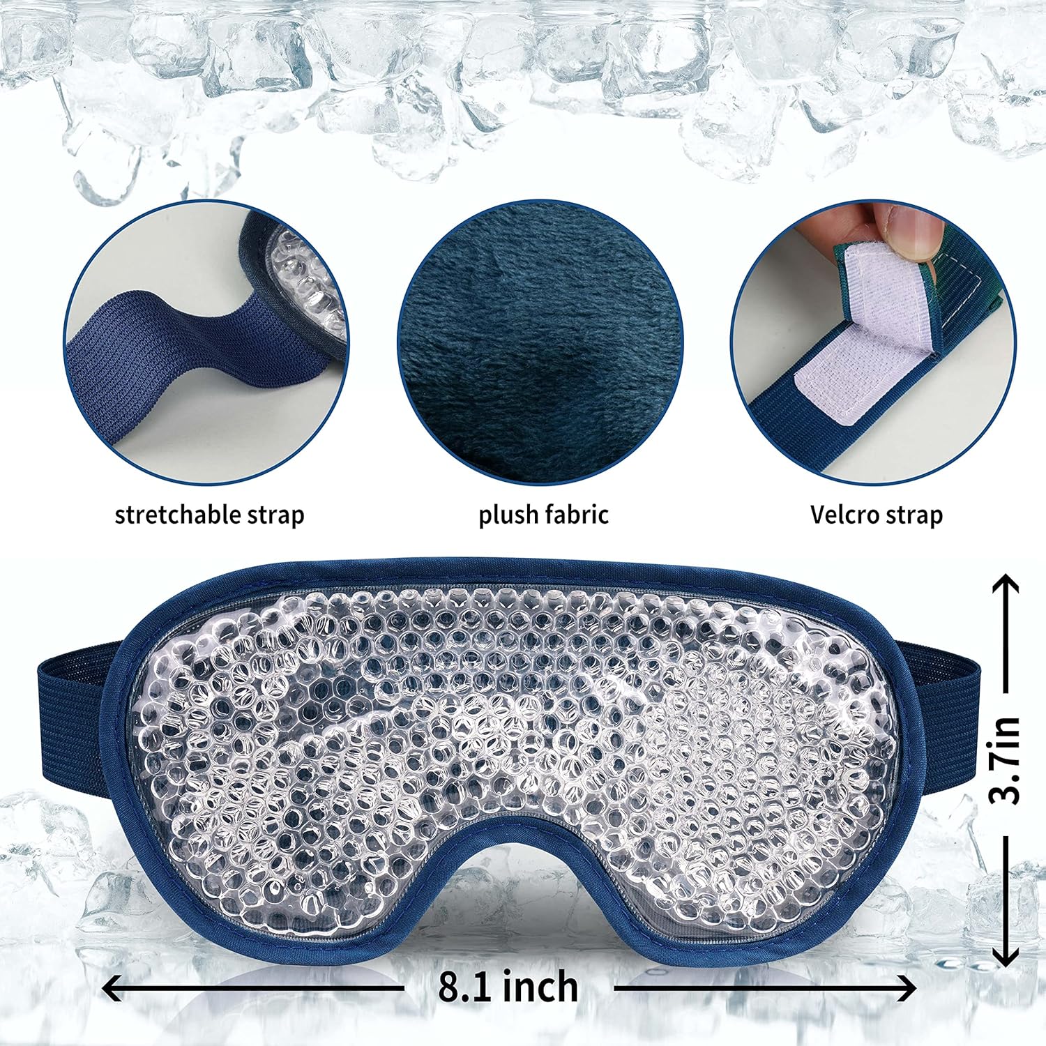 Cooling Eye Mask with Gel Bead, Reusable Cold Compress Ice Pack Sleeping Eye Cooling Pads for After Eyelid Surgery, Puffiness, Puffy Eyes, Headache, Migraine Relief(Navy Blue)