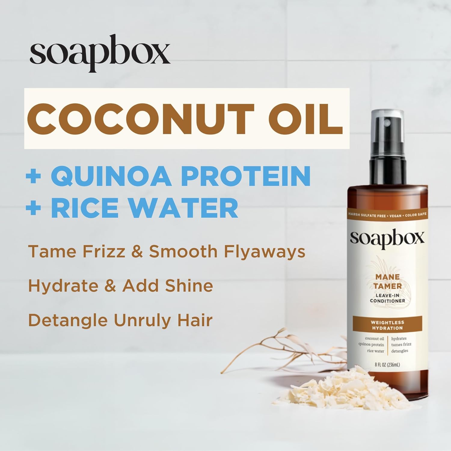Soapbox Mane Tamer, Leave-In Conditioner Spray to Tame Frizz, Smooth Fly Aways, Hydrate, Add Shine & Detangle Dry, Damaged Hair, Paraben Free, Vegan (8oz)