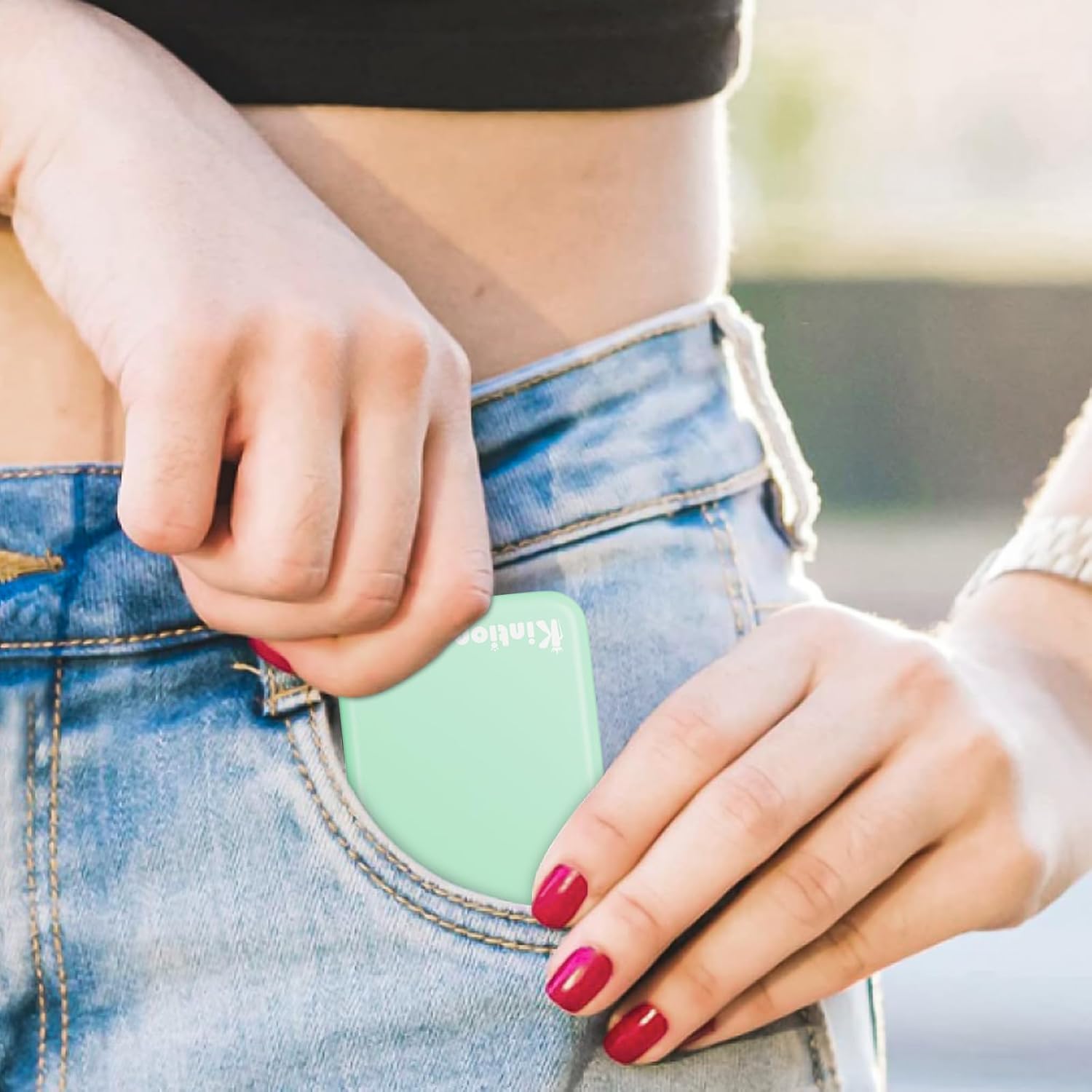 Kintion Rechargeable Pocket Mirror, Double Sided 1X/3X Magnification Compact Vanity Mirror, 3 Color Lights, Dimmable, Small Portable Wallet Mirror, Lighted Travel Mirror for Women Gifts, Cyan