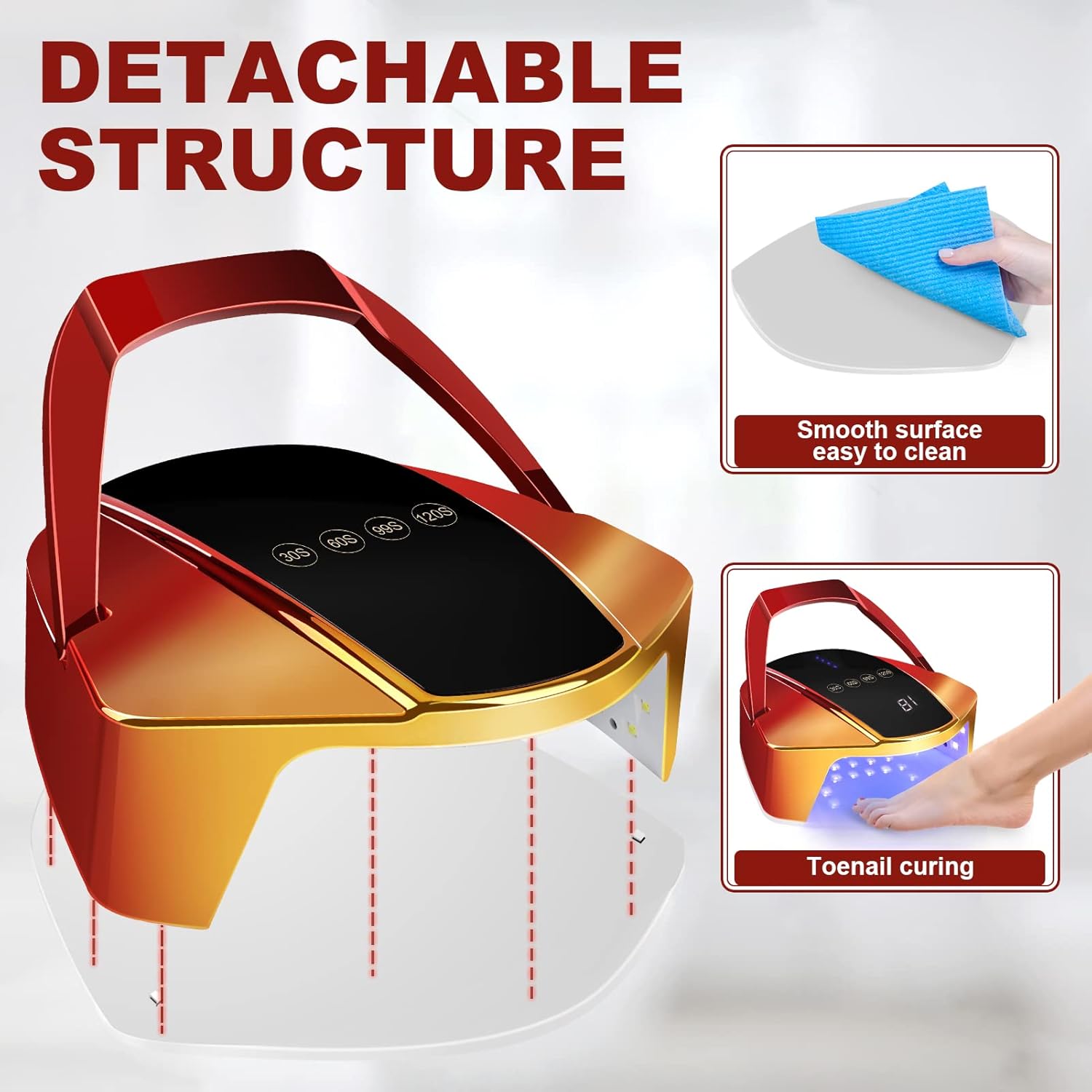 96w Cordless LED Nail Lamp with Portable Handle Professional Curing UV Lamp for Gel Nails Auto Infrared Sensor and 4 Timers (Red)
