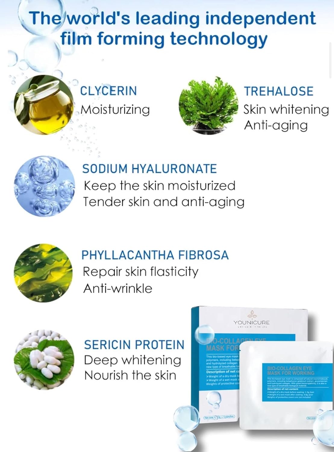 BIO-COLLAGEN EYE MASK, Anti Aging Eye Mask, Targets Wrinkles, Dark Circles, Eye Fatique, 5 Pairs